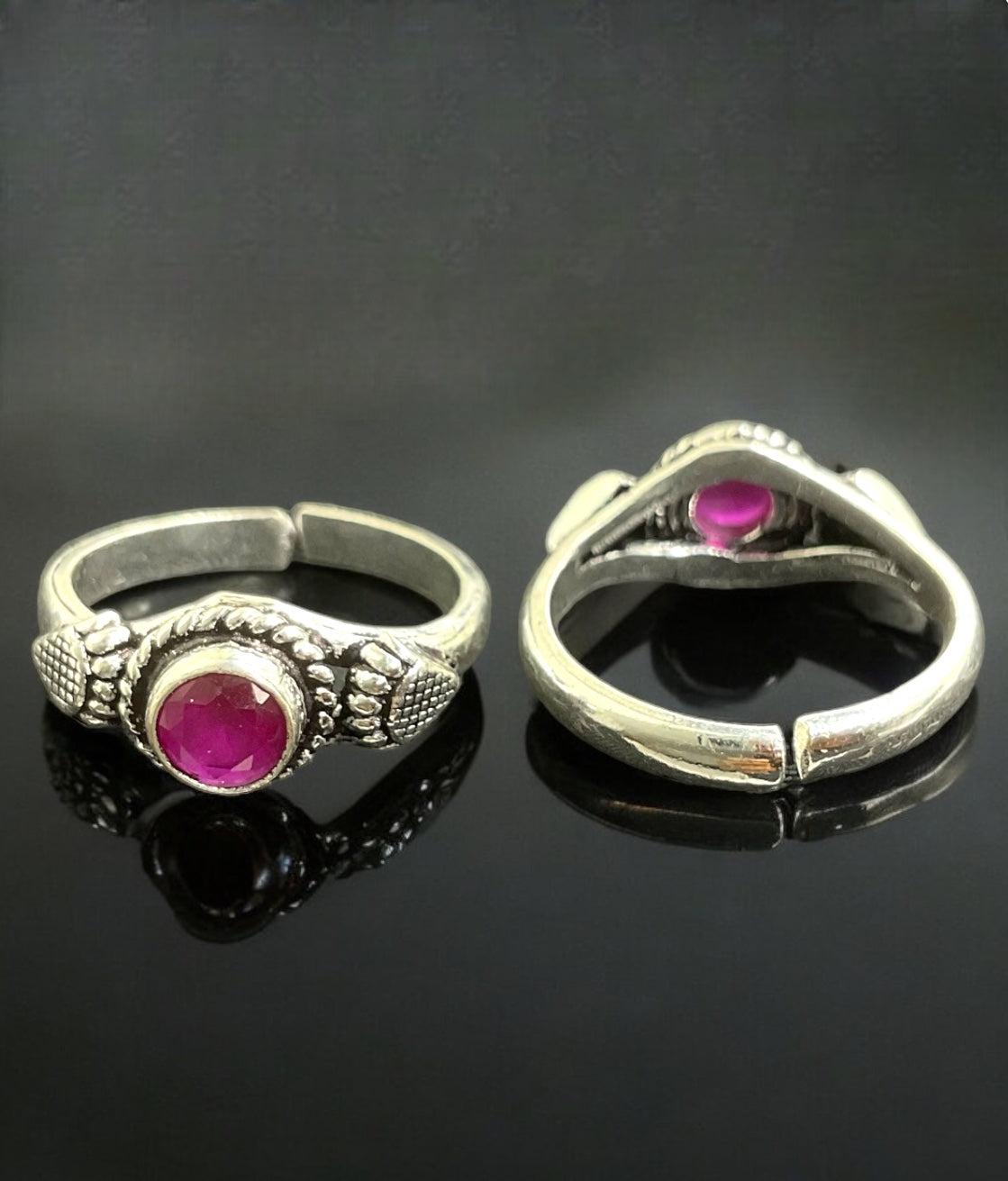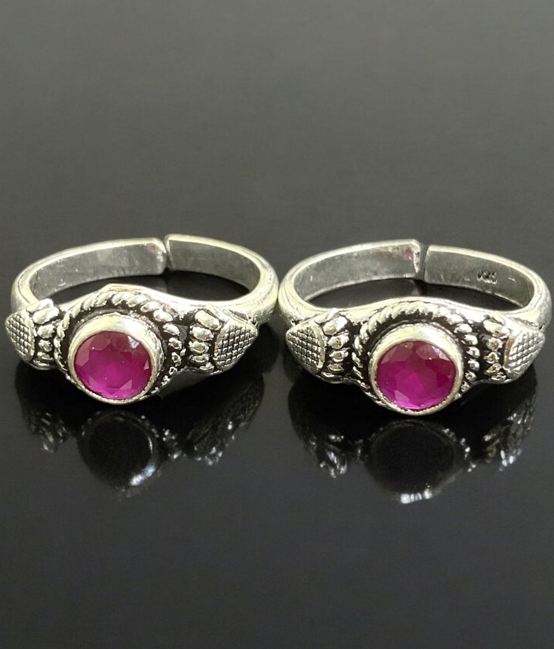 Let your feet do all the talking with this gorgeous pair of Sterling silver (92.5%) toe-rings with a single gemstone in the center. You can adjust the open silver band at the front to fit your toe size.