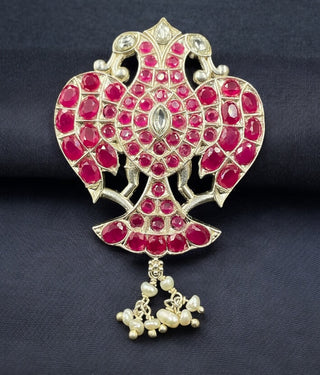 The Red Dvirupa Gandaberunda Silver Pendant/Brooch (Oxidised/Small)