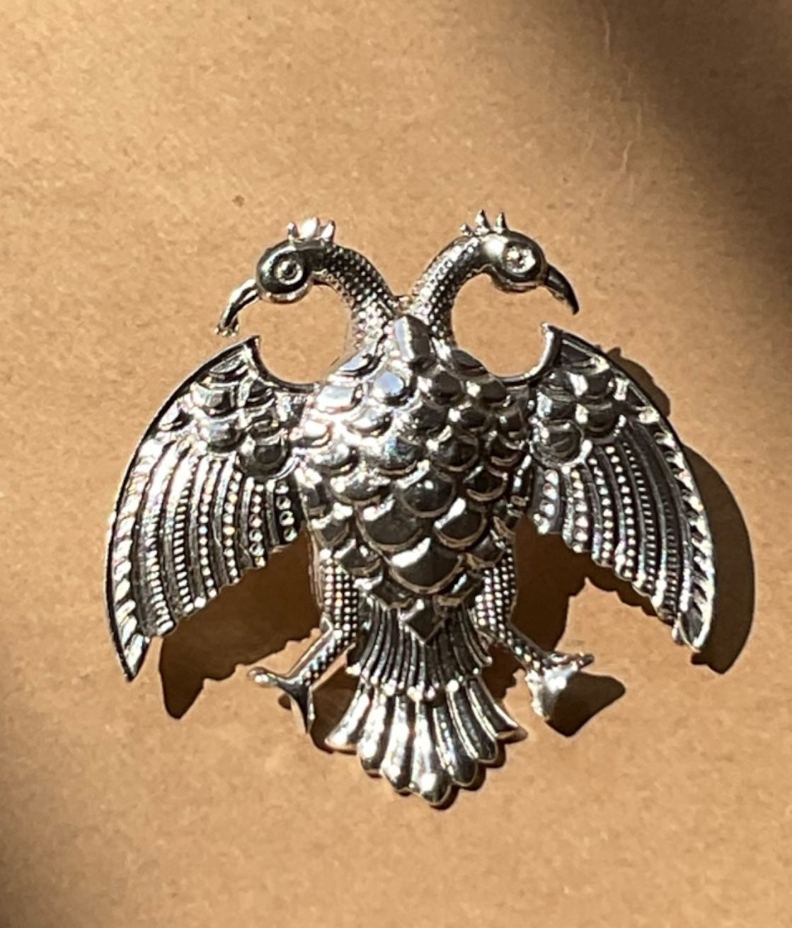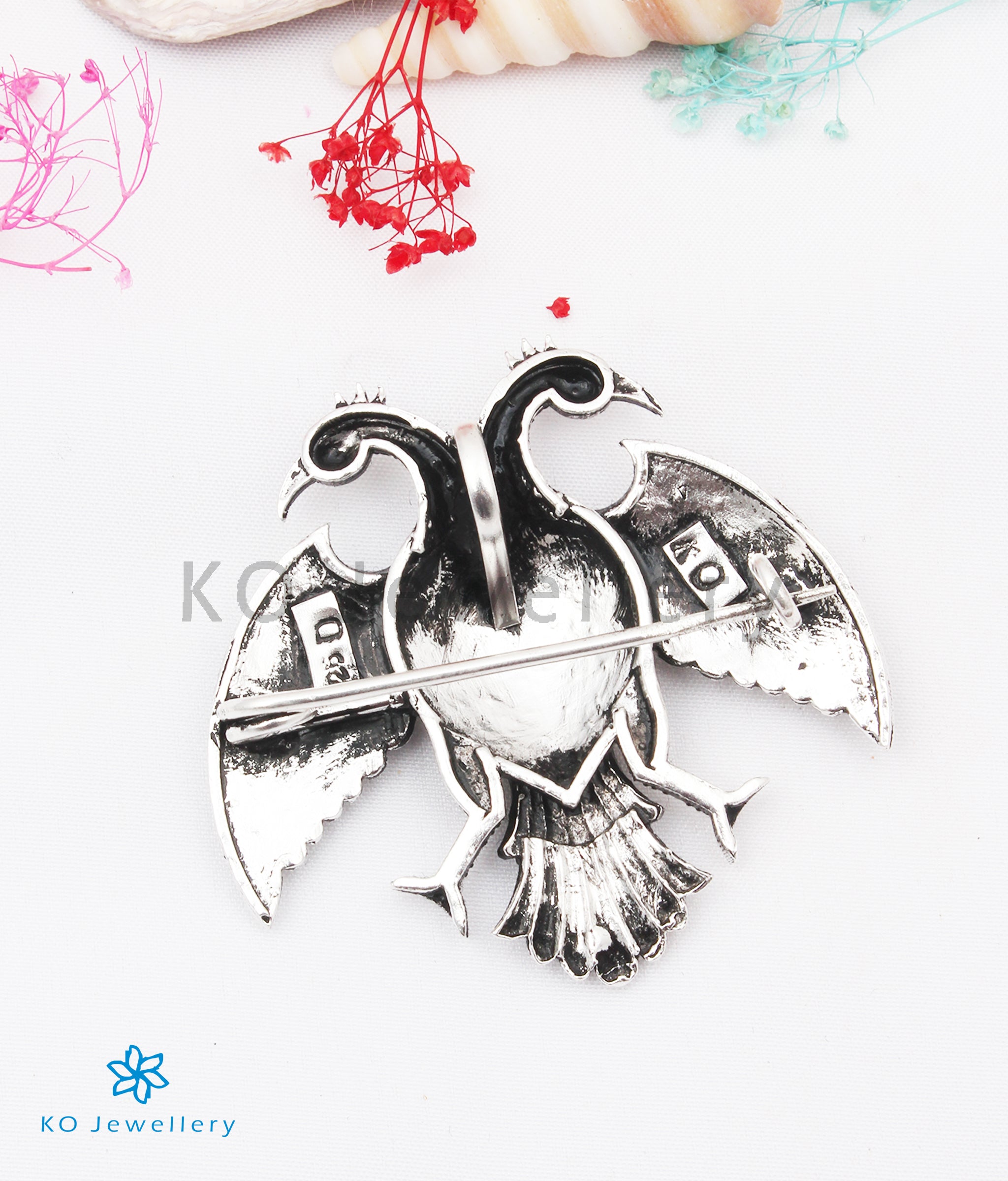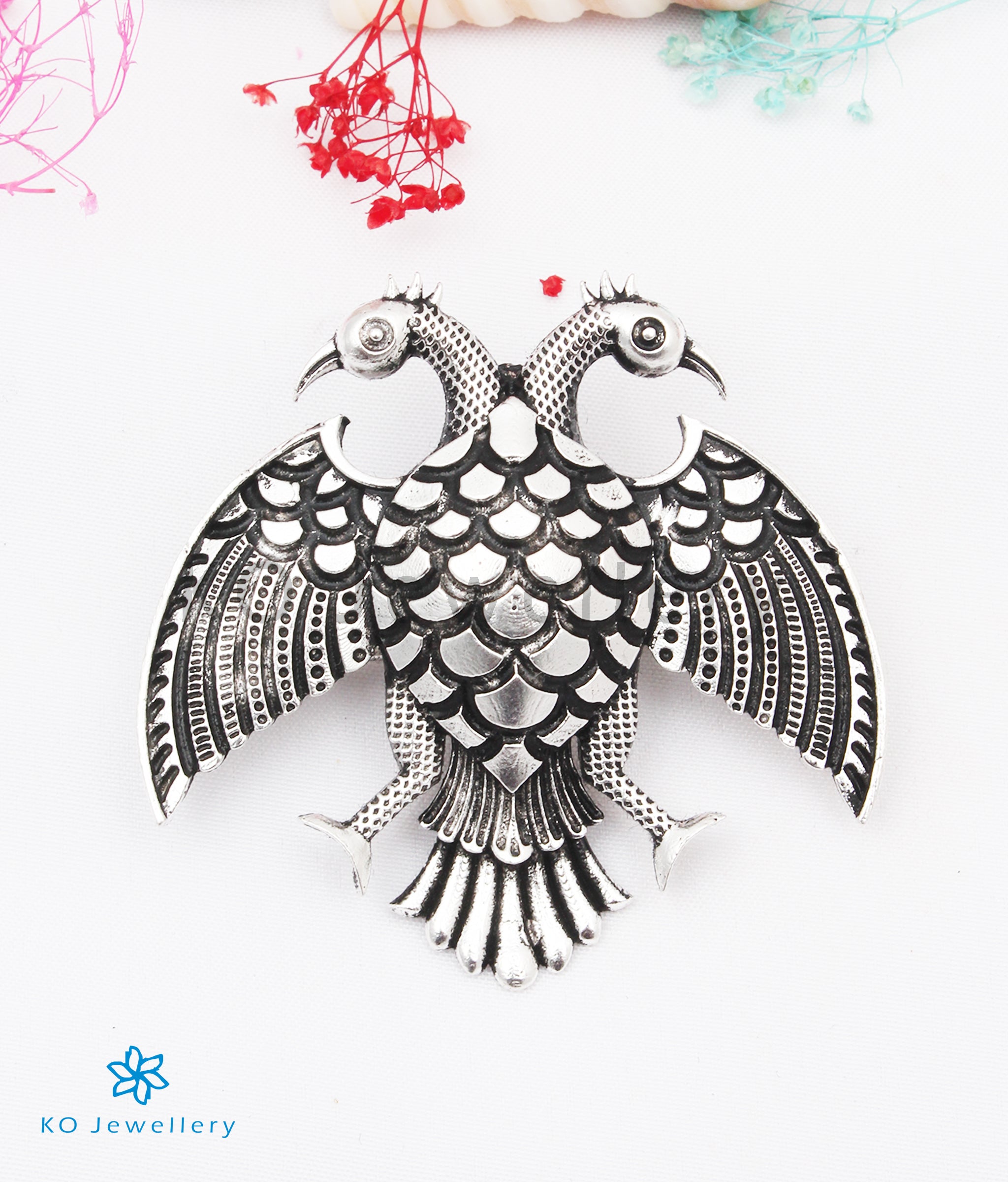 The Dvirupa Gandaberunda Silver Pendant/Brooch (Big/Oxidised)