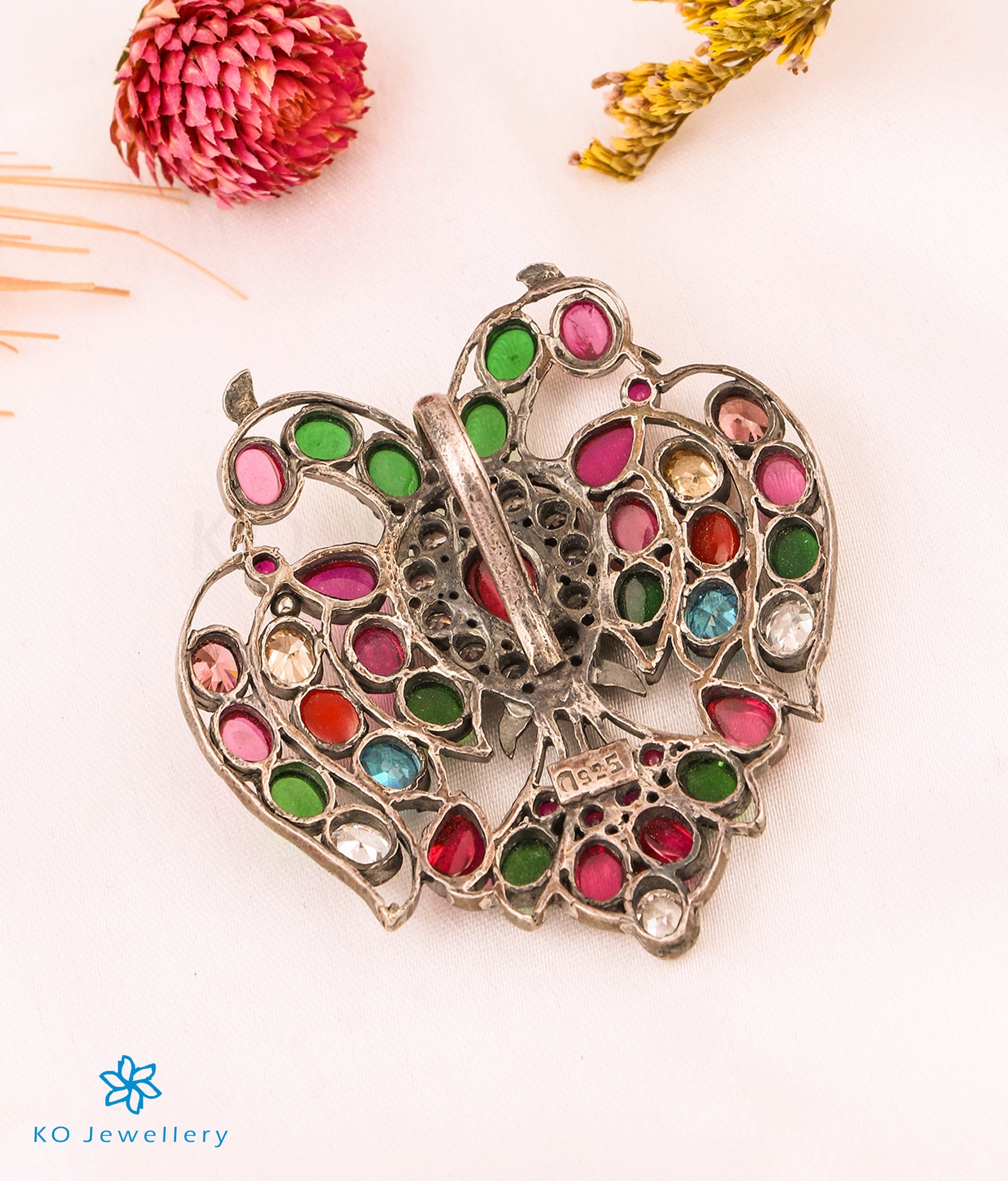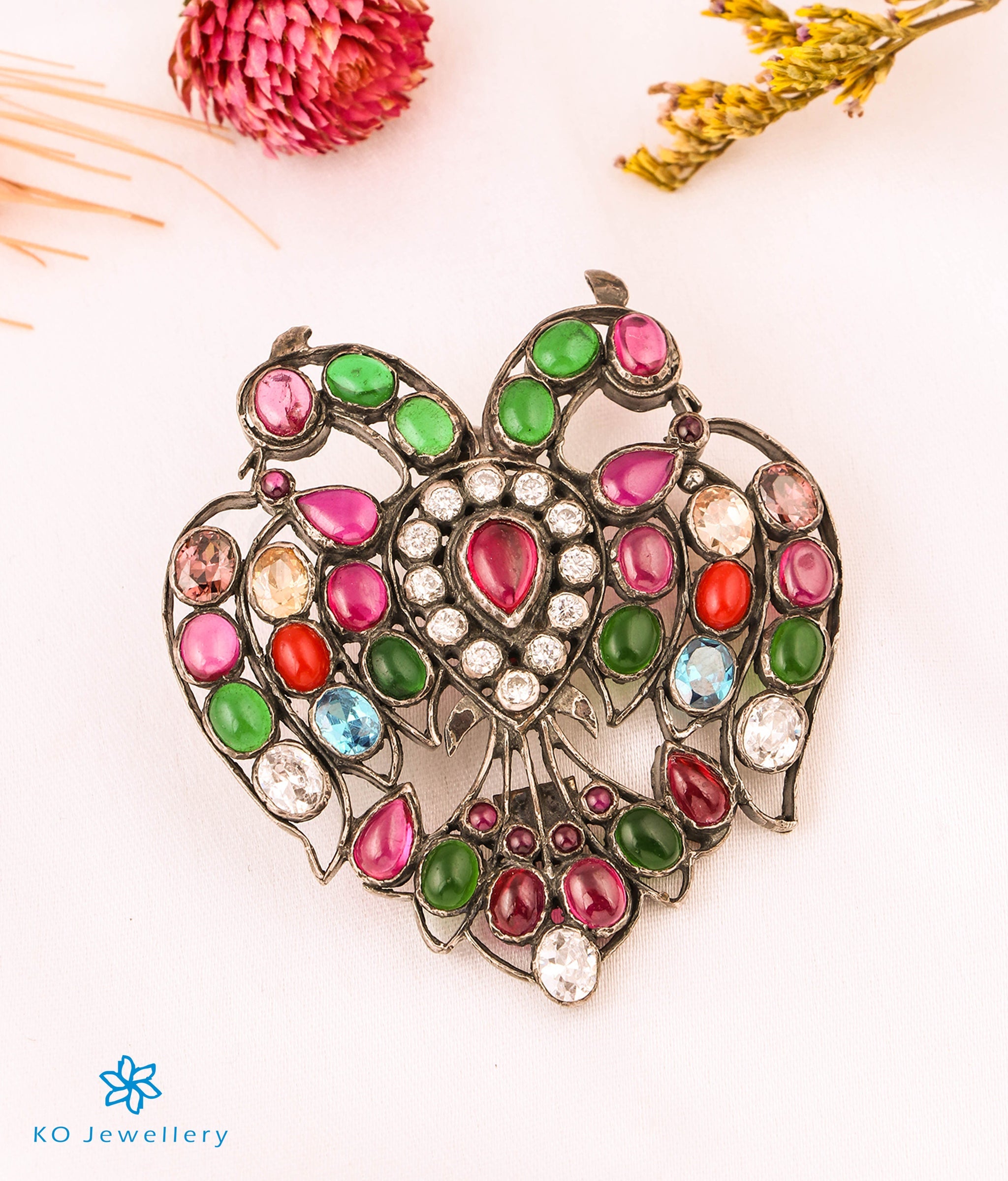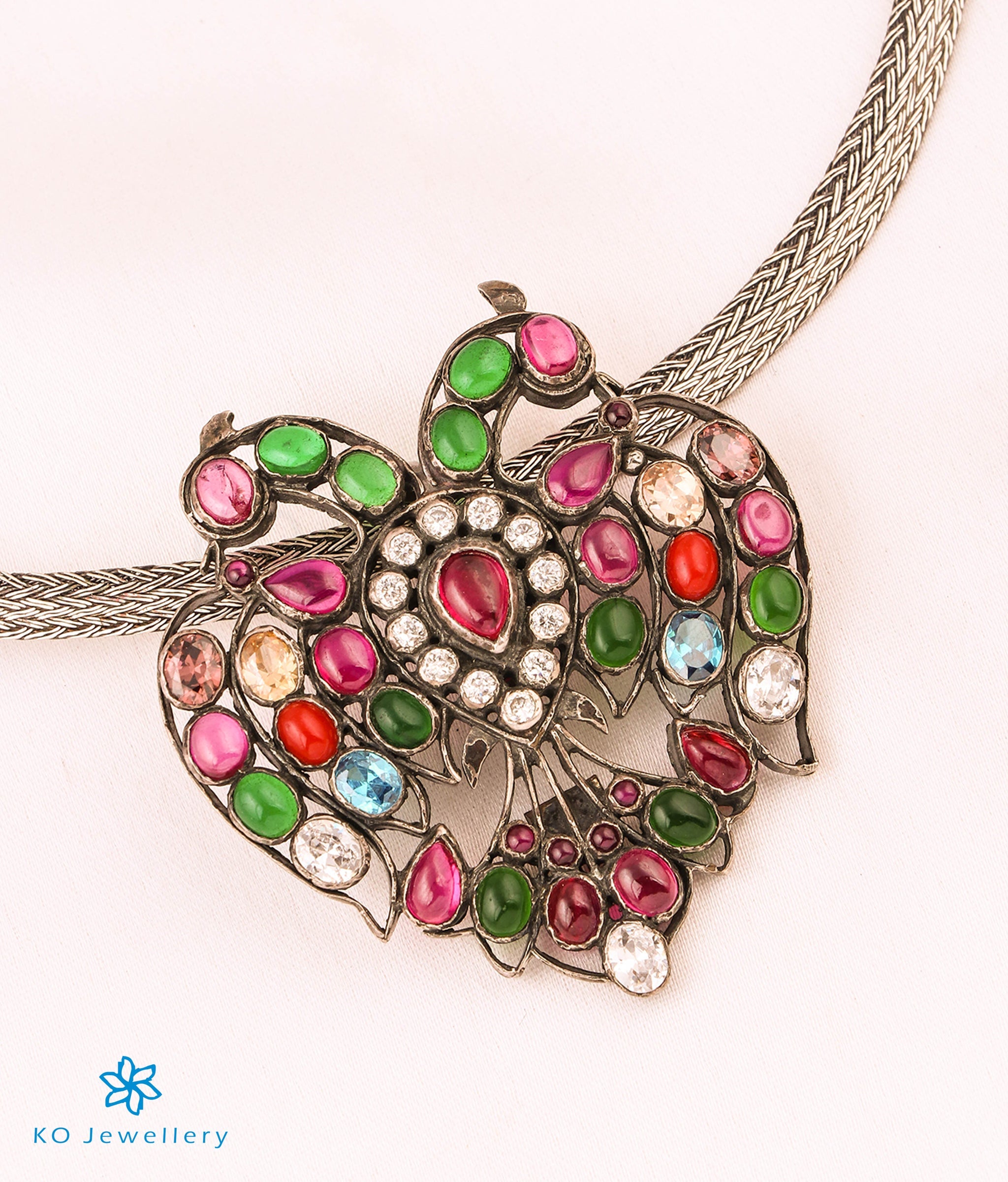 The Ekya Gandaberunda Silver Pendant (Oxidised/Navratna)