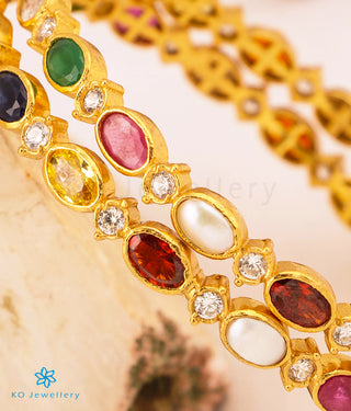 The Reyna Silver Navratna Bangle -Single (Size 2.2/2.4/2.6/2.8)
