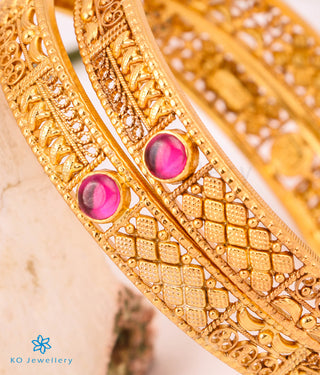 The Manya Silver Filigree Kemp Bangle - Single (Red&Green/Size 2.2/2.4/2.6/2.8)