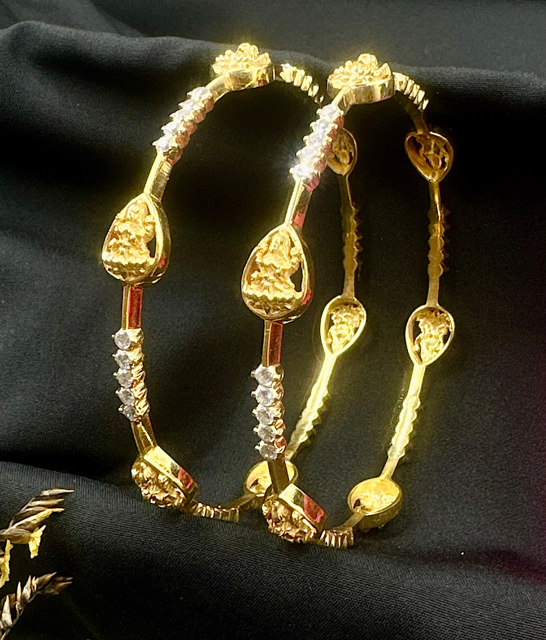 The Purvi Diamond Lakshmi Silver Bangle-Single (Size 2.6)-Diamond Lakshmi Silver Bangle-Buy Gold Plated Silver Bangles Online - KO Jewellery