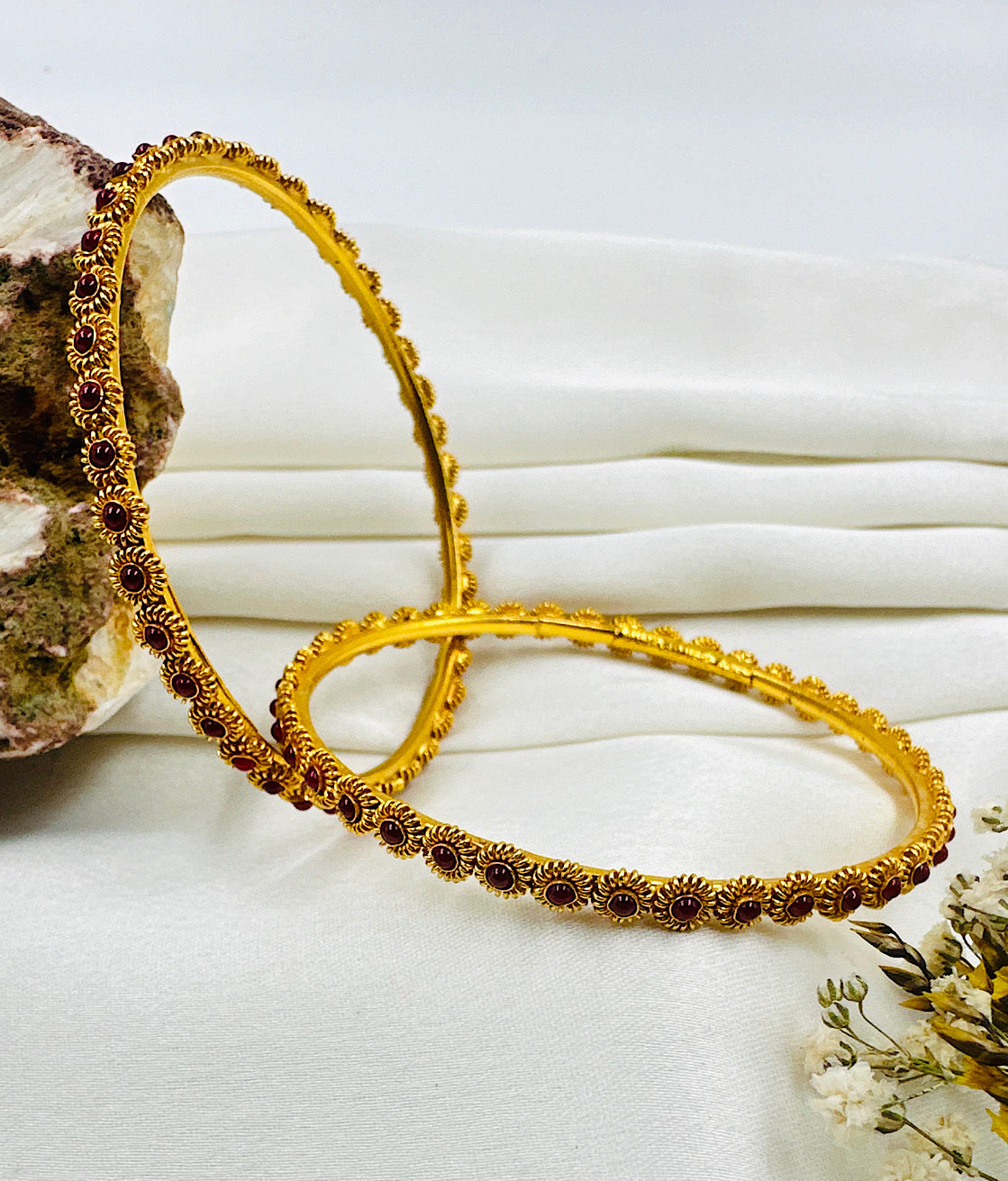 The Sahitya Silver Kemp Bangle (Red/Size/2.6)