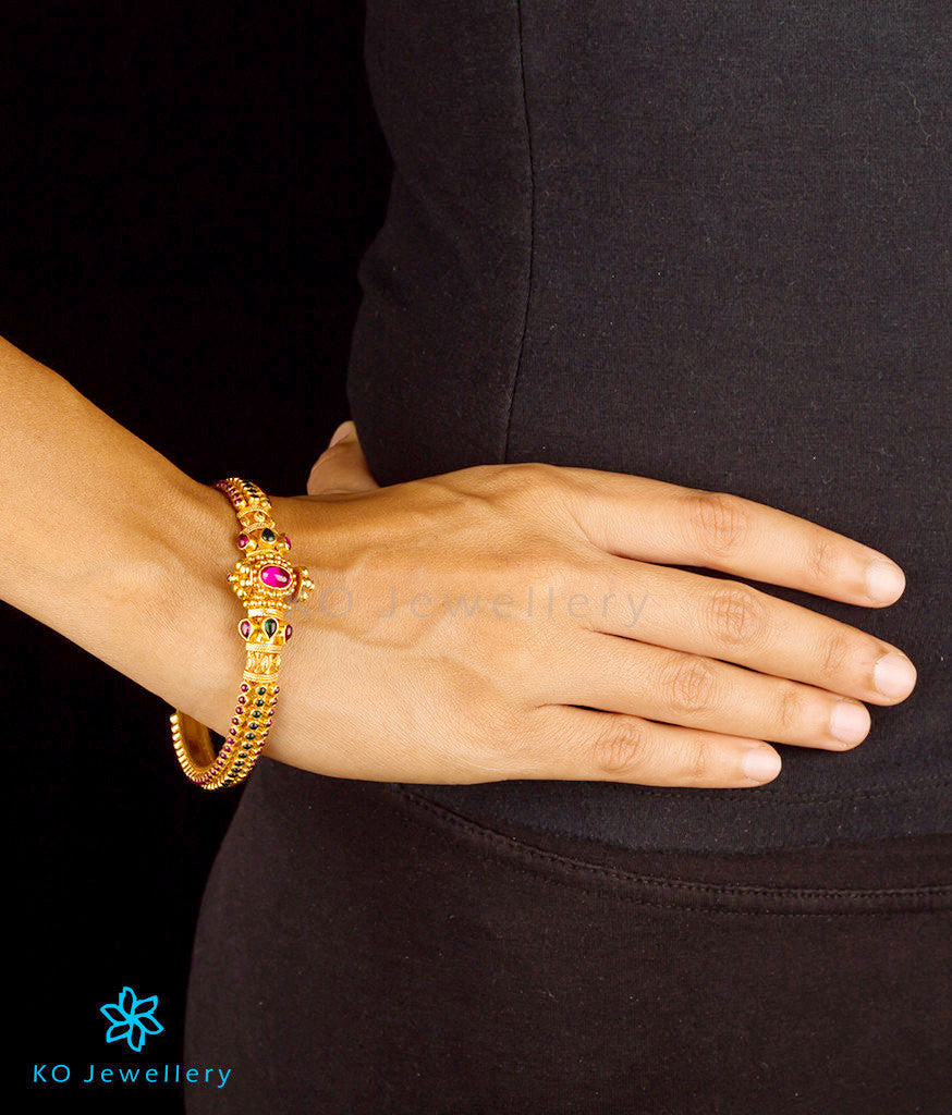 The Aaratrika Silver Kempu Bracelet- Single (Red/Size 2.2/2.4/2.6/2.8)