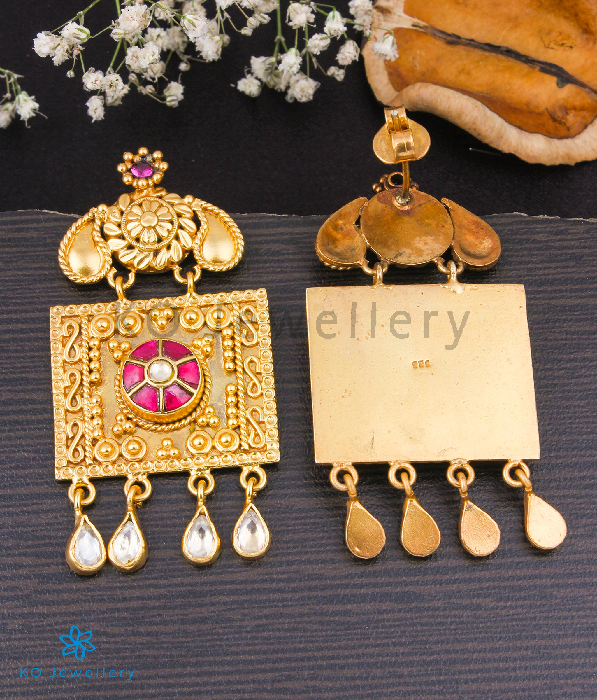 Bespoke and attractive these gold-dipped sterling silver (92.5%) statement earrings will brighten up any outfit. The contemporary design and colour means that you can pair these earrings with western and Indian outfits. The earrings come with a push back closure.