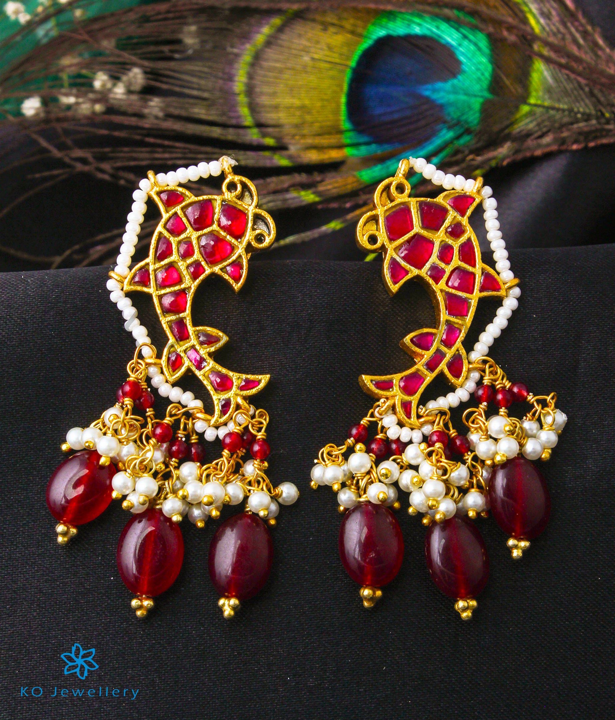 Bespoke and attractive these fish motif , gold-dipped sterling silver (92.5%) statement earrings will brighten up any outfit. The contemporary design and colour means that you can pair these earrings with western and Indian outfits. The earrings come with a push back closure.