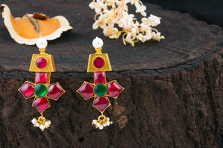 The Darsh Silver Reversible Earrings(Green/Navratna)