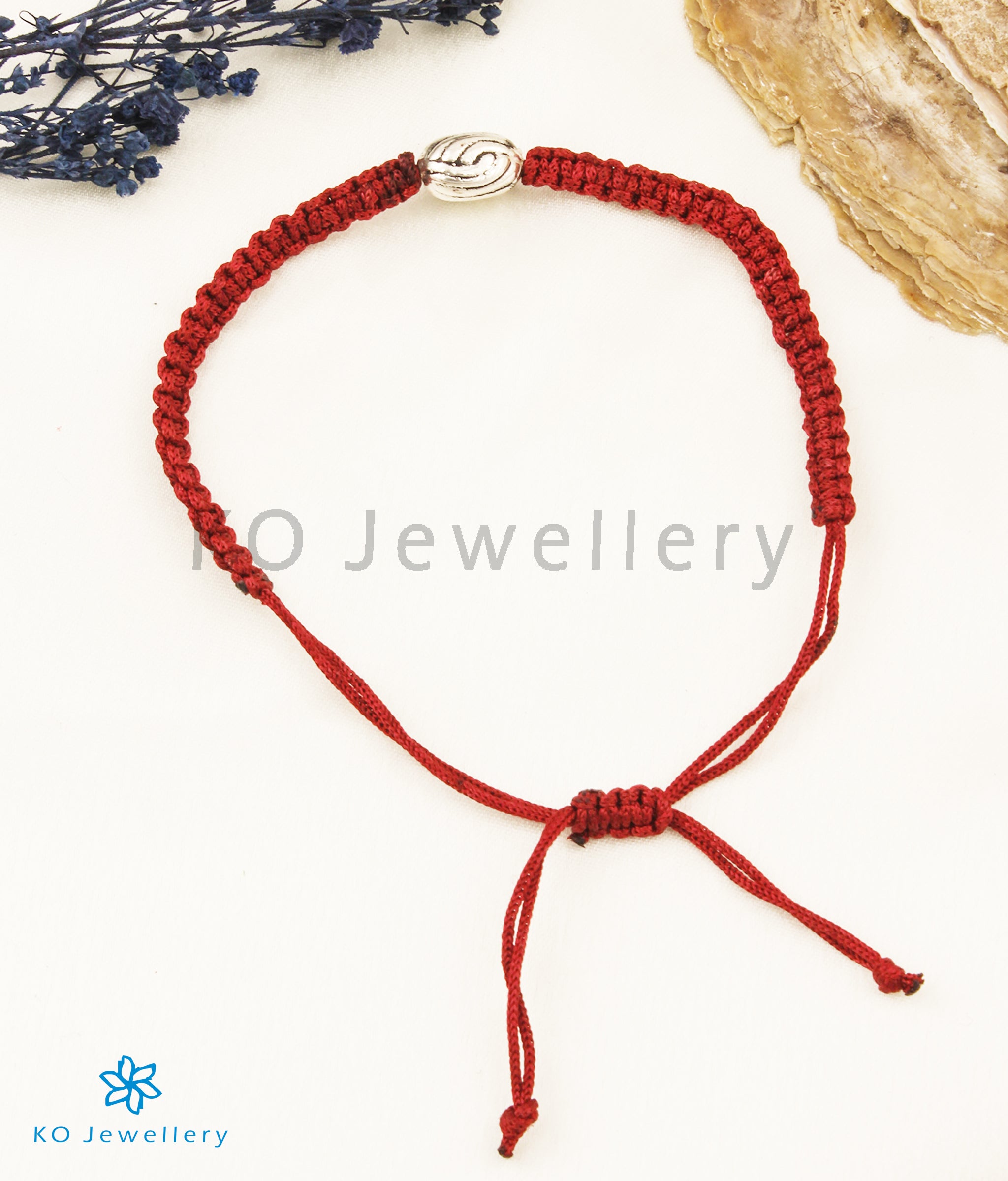 Sport a cool accessory on your wrist , with this pretty handwoven thread bracelet with a single handcrafted Sterling Silver (92.5%) bead at its center. This is a unisex design and has an adjustable strap .