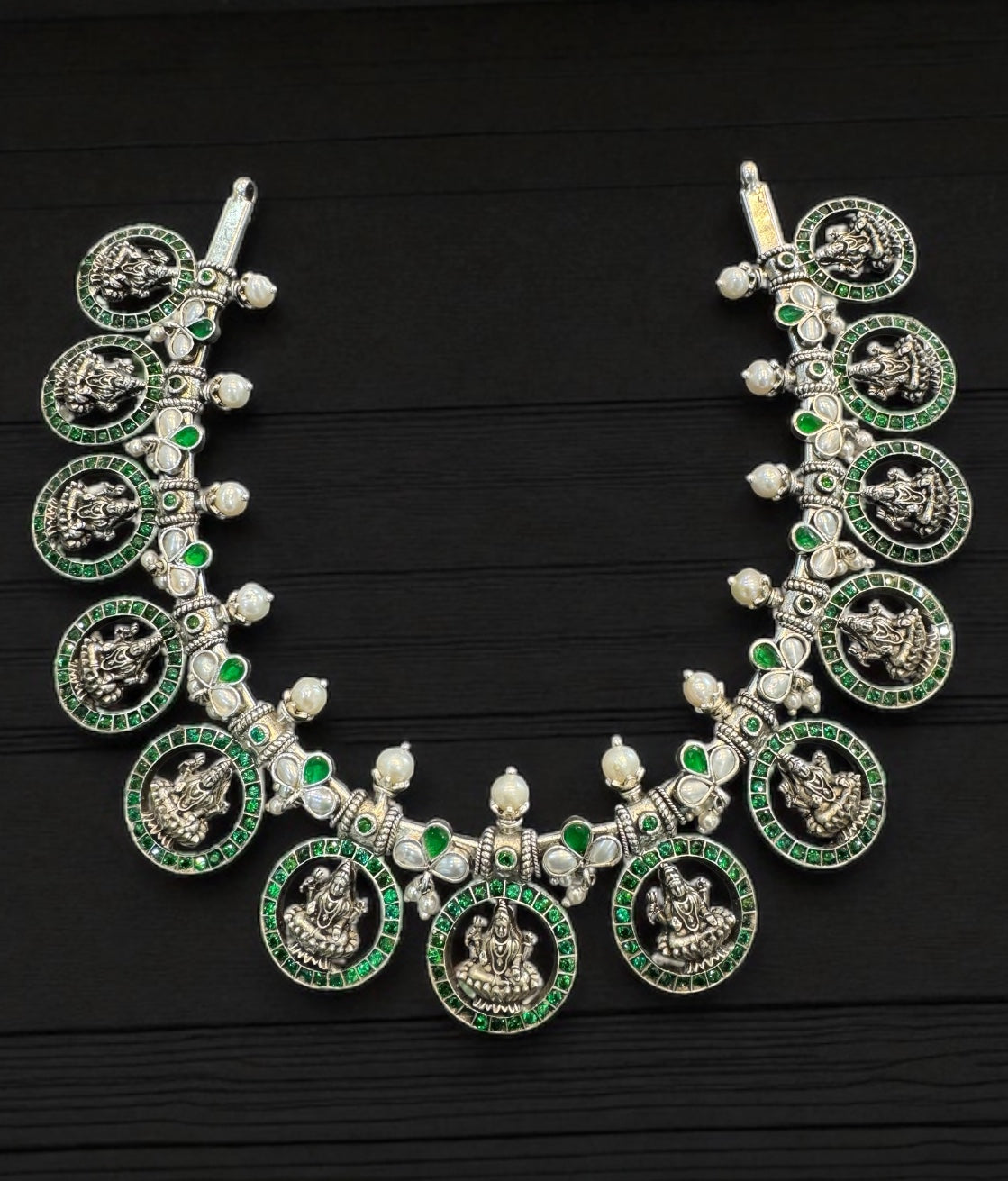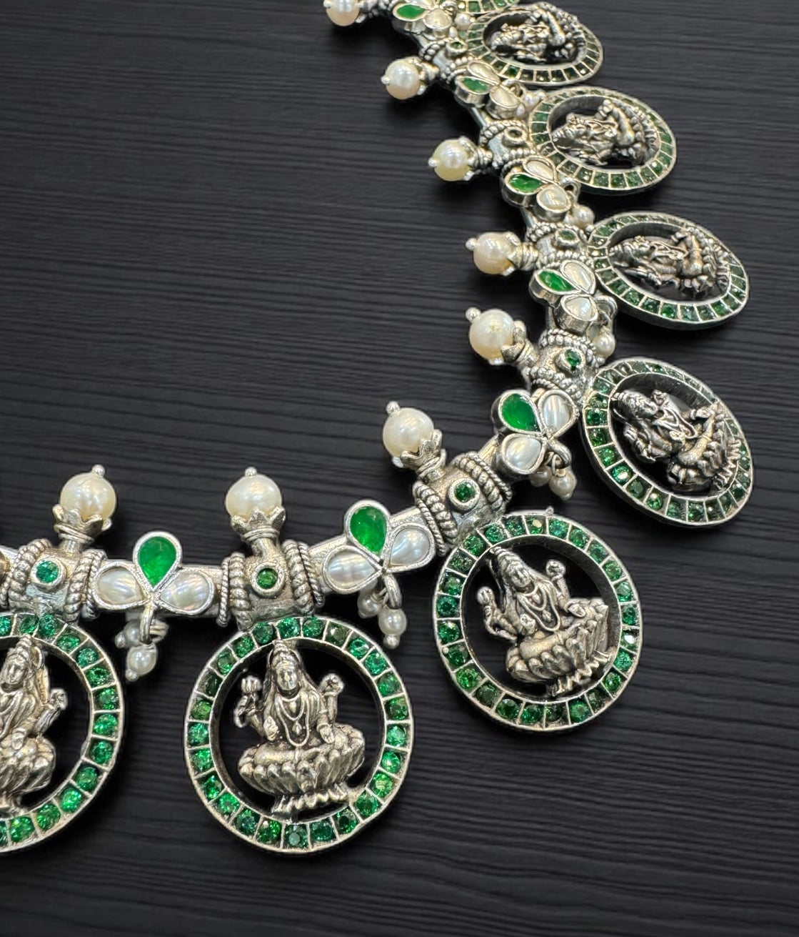 Heirloom 925 Silver Nakkasi Lakshmi Necklace - Handcrafted divinity.