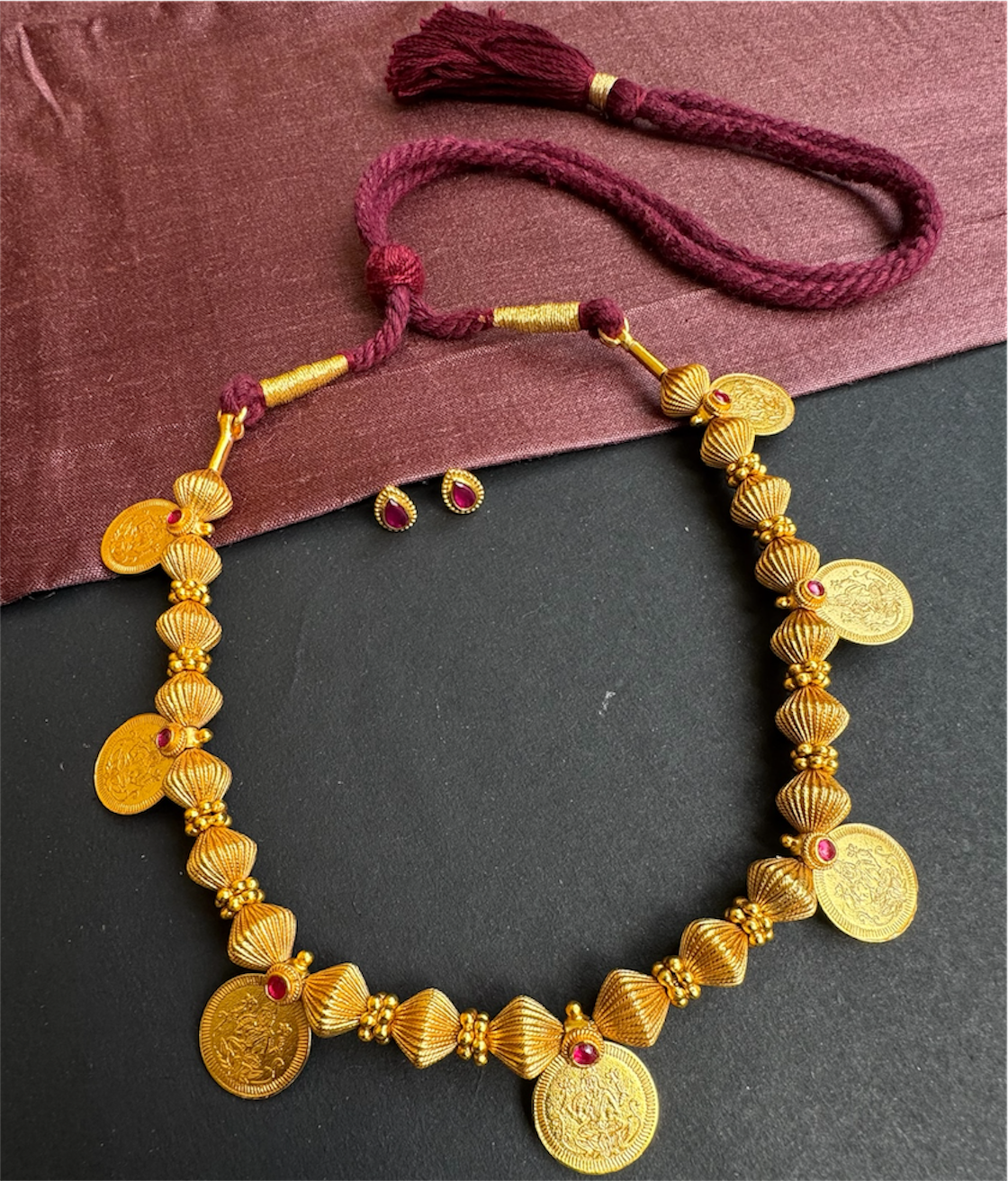 Gemstones used: kempu stone (also known as spinel or Zircon).