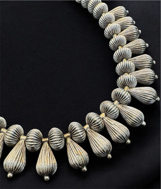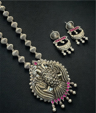 The Suvrata Silver Gandaberunda Beads Necklace & Earrings (Oxidised)