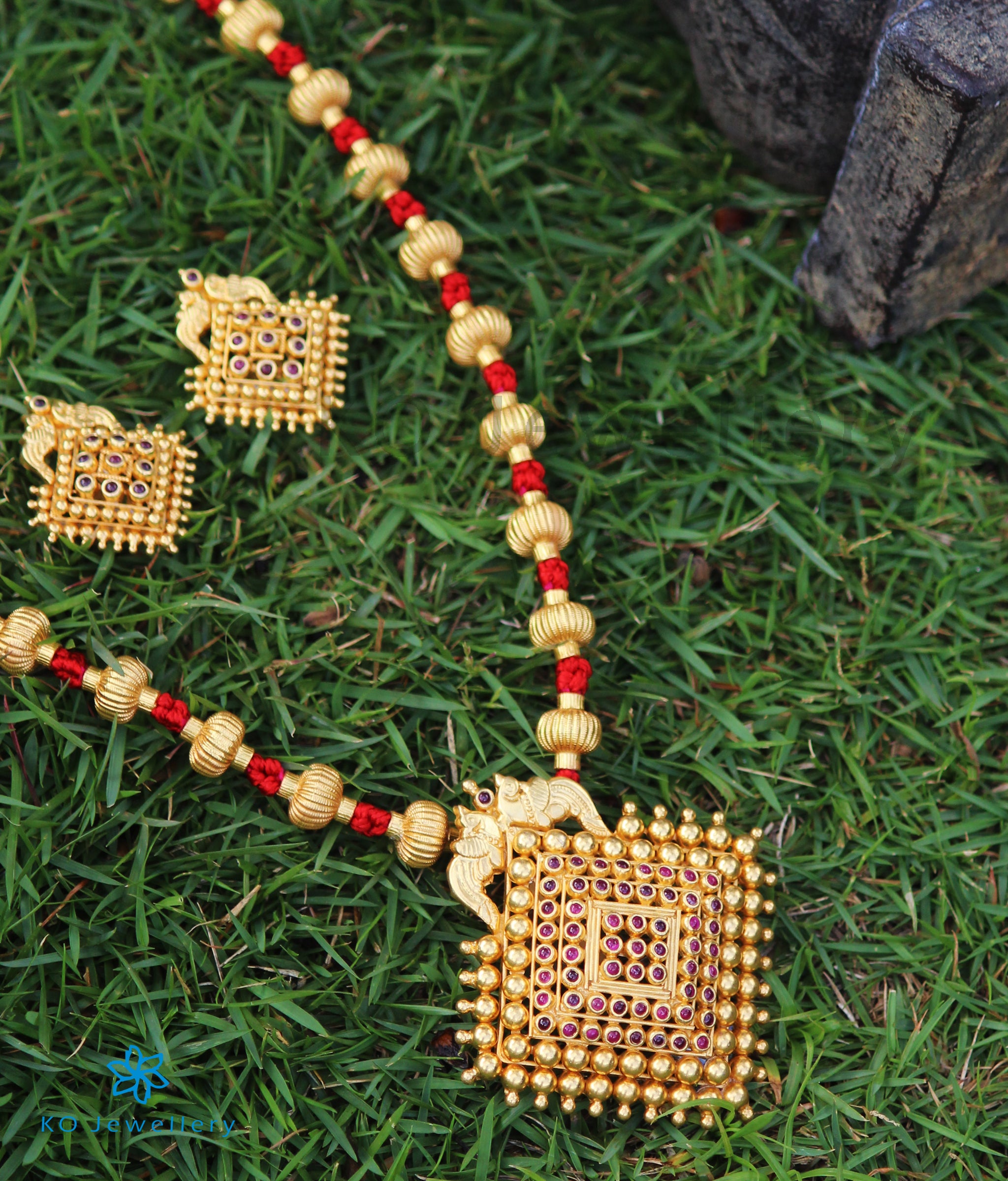 The Amitava Jomale Silver Necklace (Long/Red)-Buy real Heritage temple jewellery By Online. - KO Jewellery