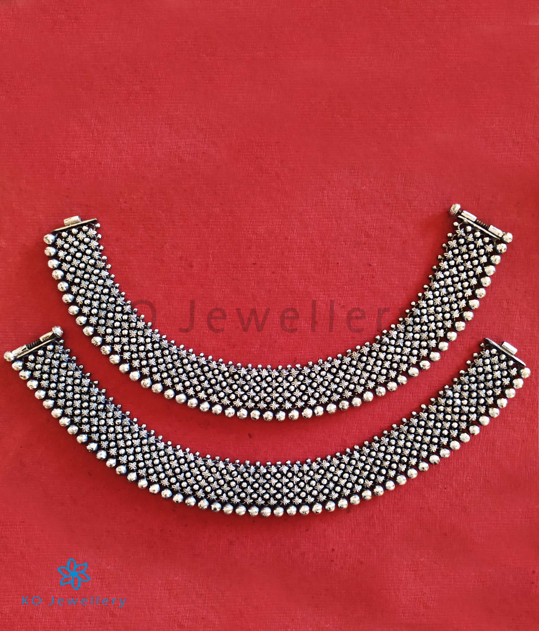 The Sahitya Pure Silver Oxidised Ankle Bracelets - KO Jewellery