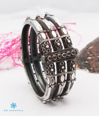 The Kumud Silver Coorgi Bracelet-Single (Three layers/Oxidised/Size 2.2/2.4/2.6/2.8)