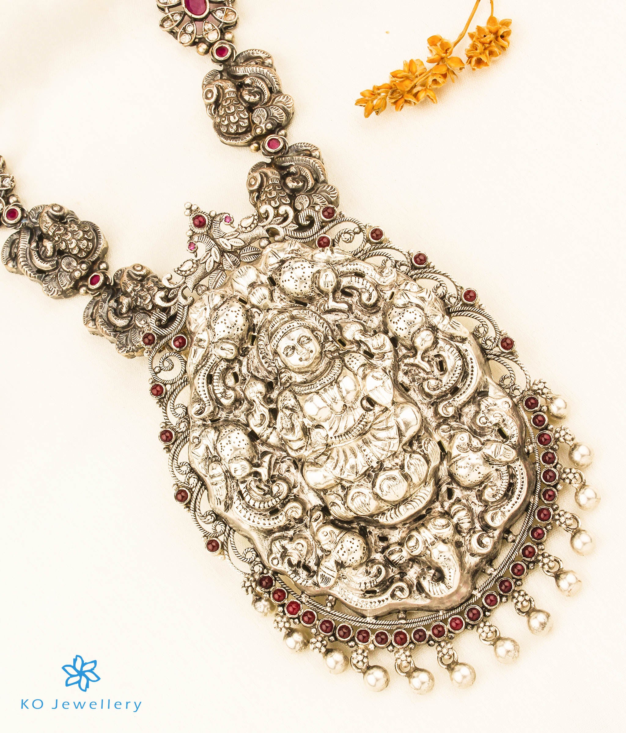 The Bhavini Nakkasi Silver Peacock Lakshmi Necklace