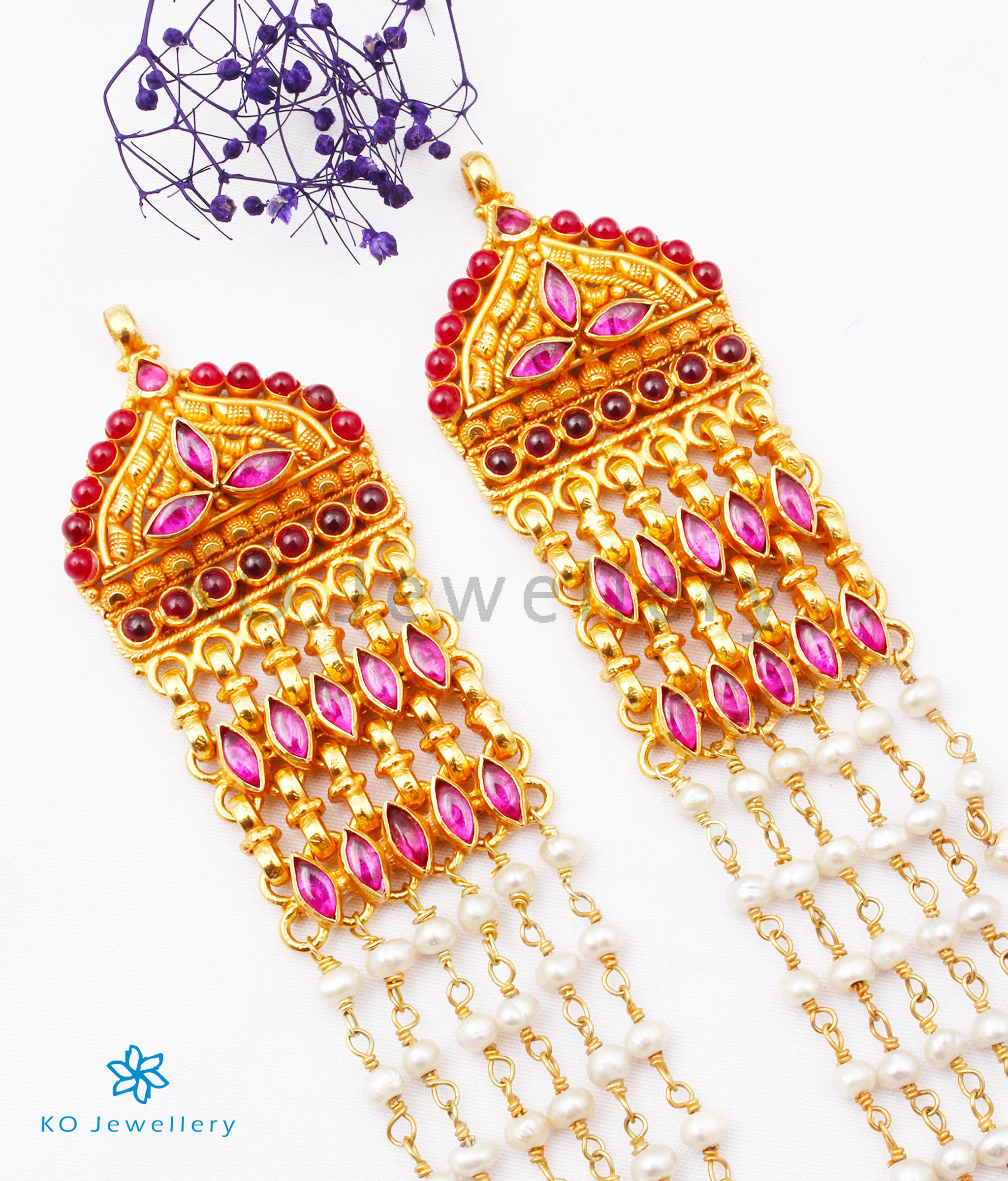 Gemstones used: natural cultured Pearl, kempu stone (also known as spinel or Zircon).