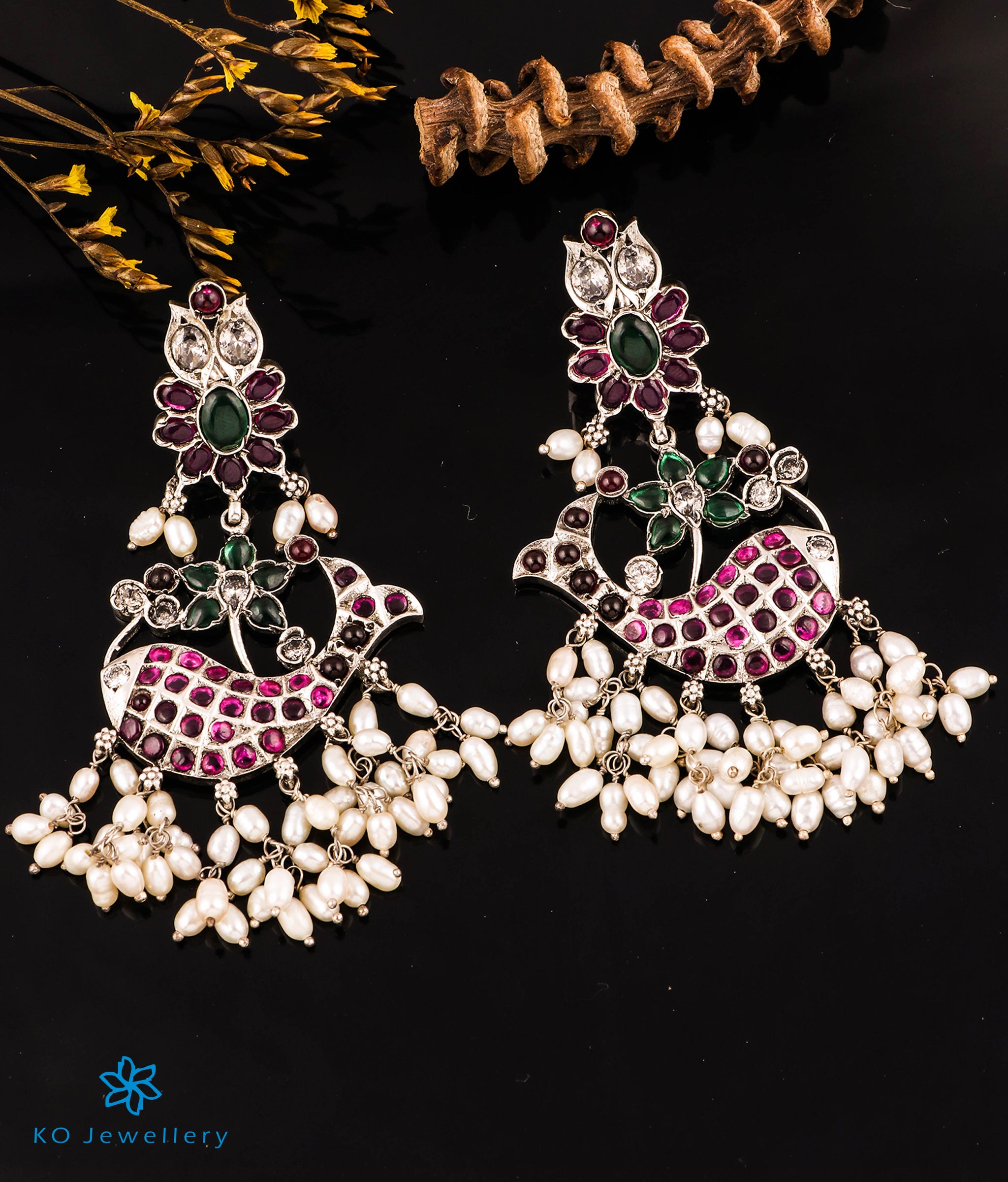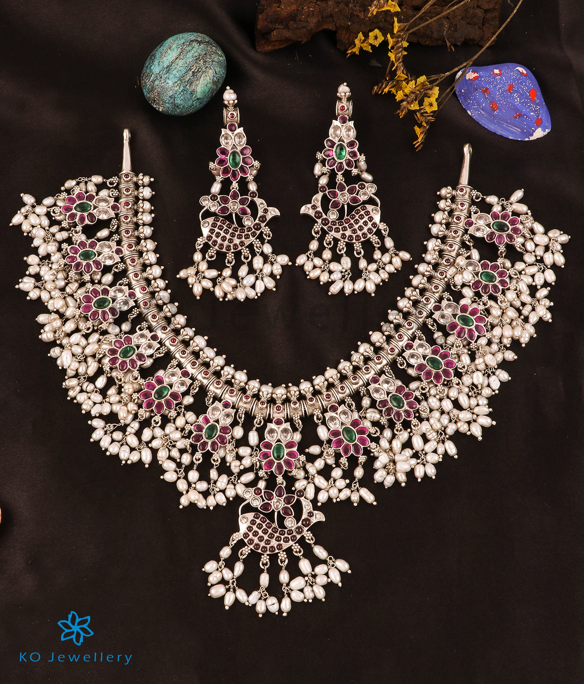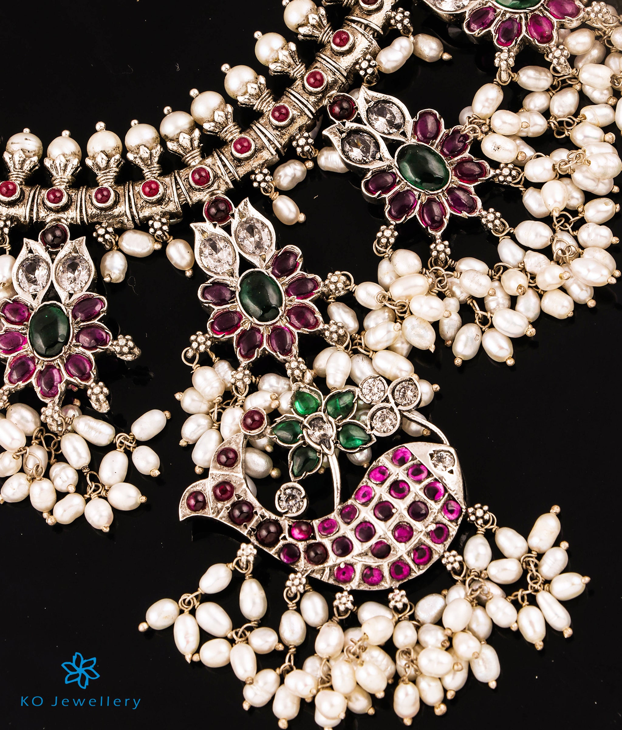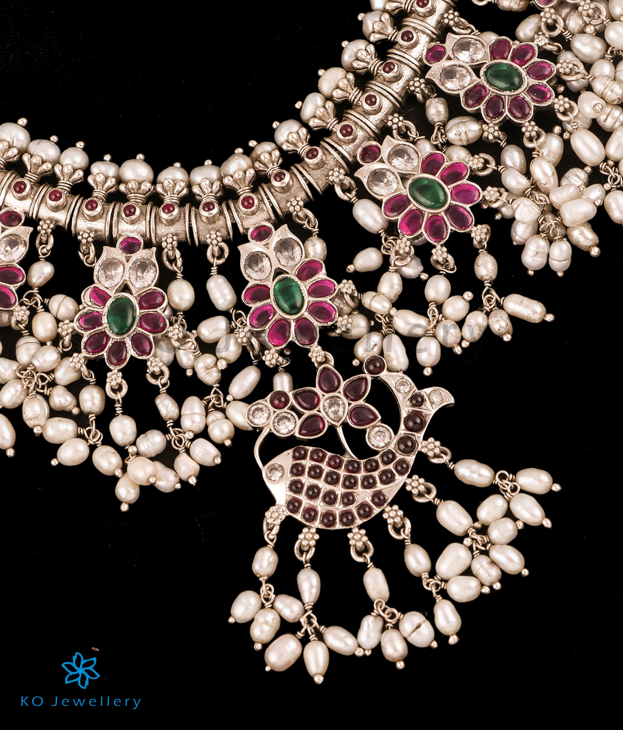Gemstones used: kempu stone (also known as spinel or Zircon), natural freshwater Pearl.