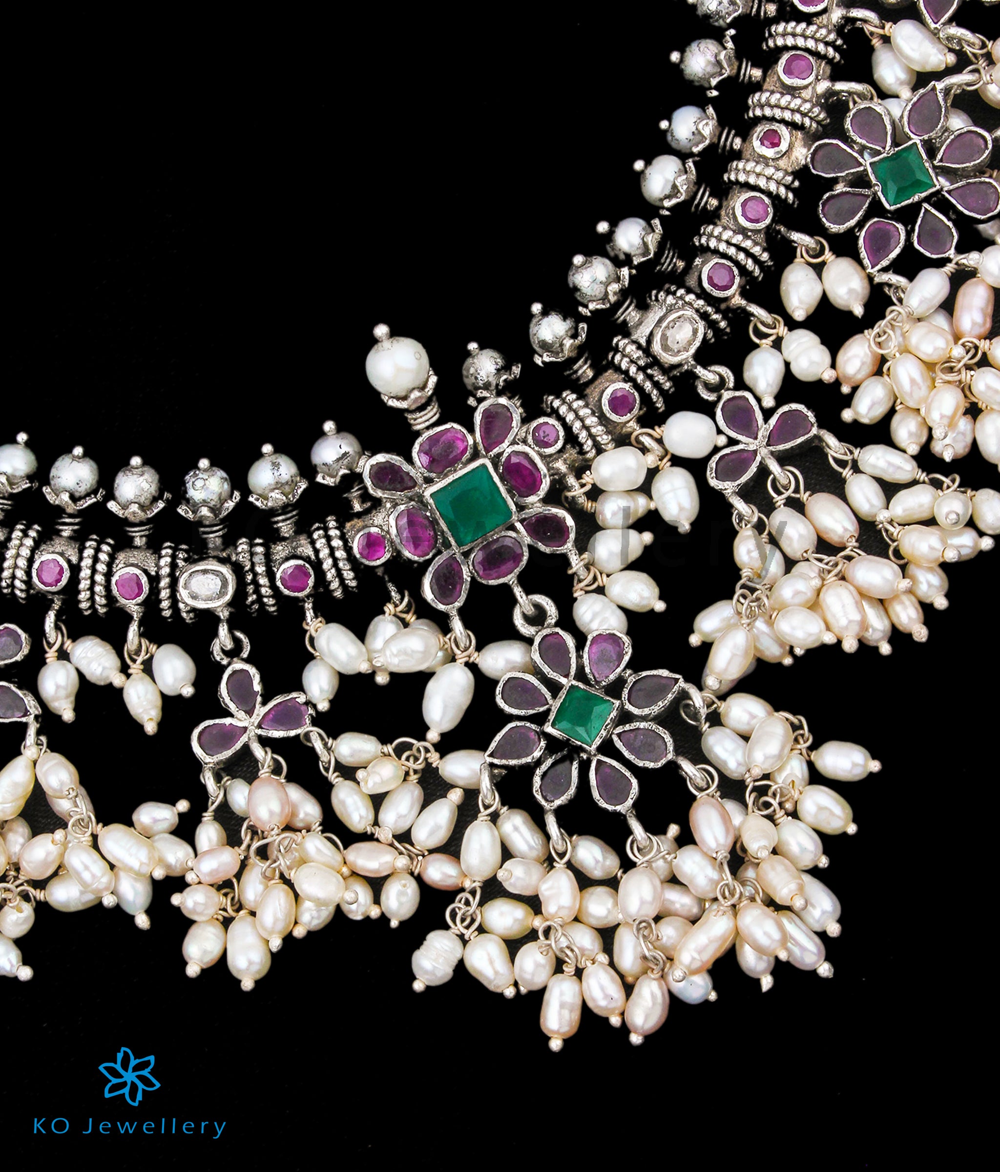 The Maya Silver Guttapusalu Necklace (Oxidised/Red/Medium)