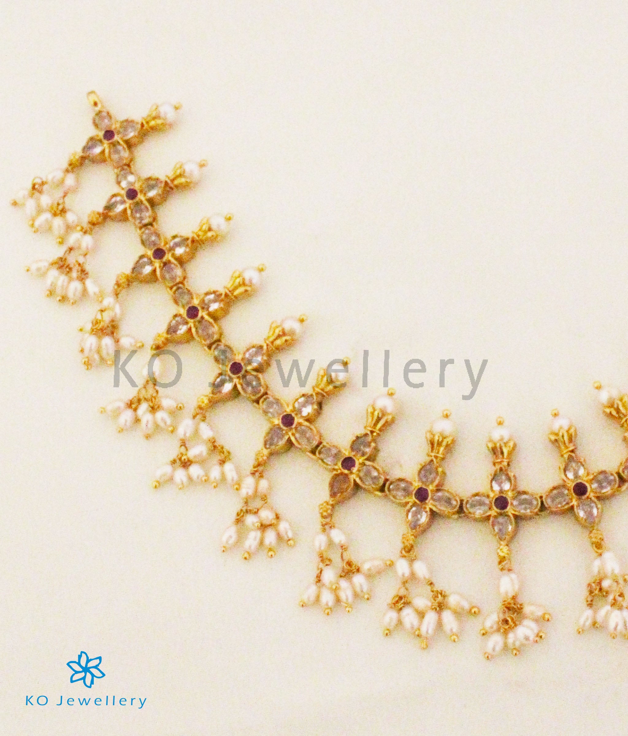 Gemstones used: AAA+ Quality Cubic Zirconia, Natural pearl, kempu stone (also known as spinel or Zircon).