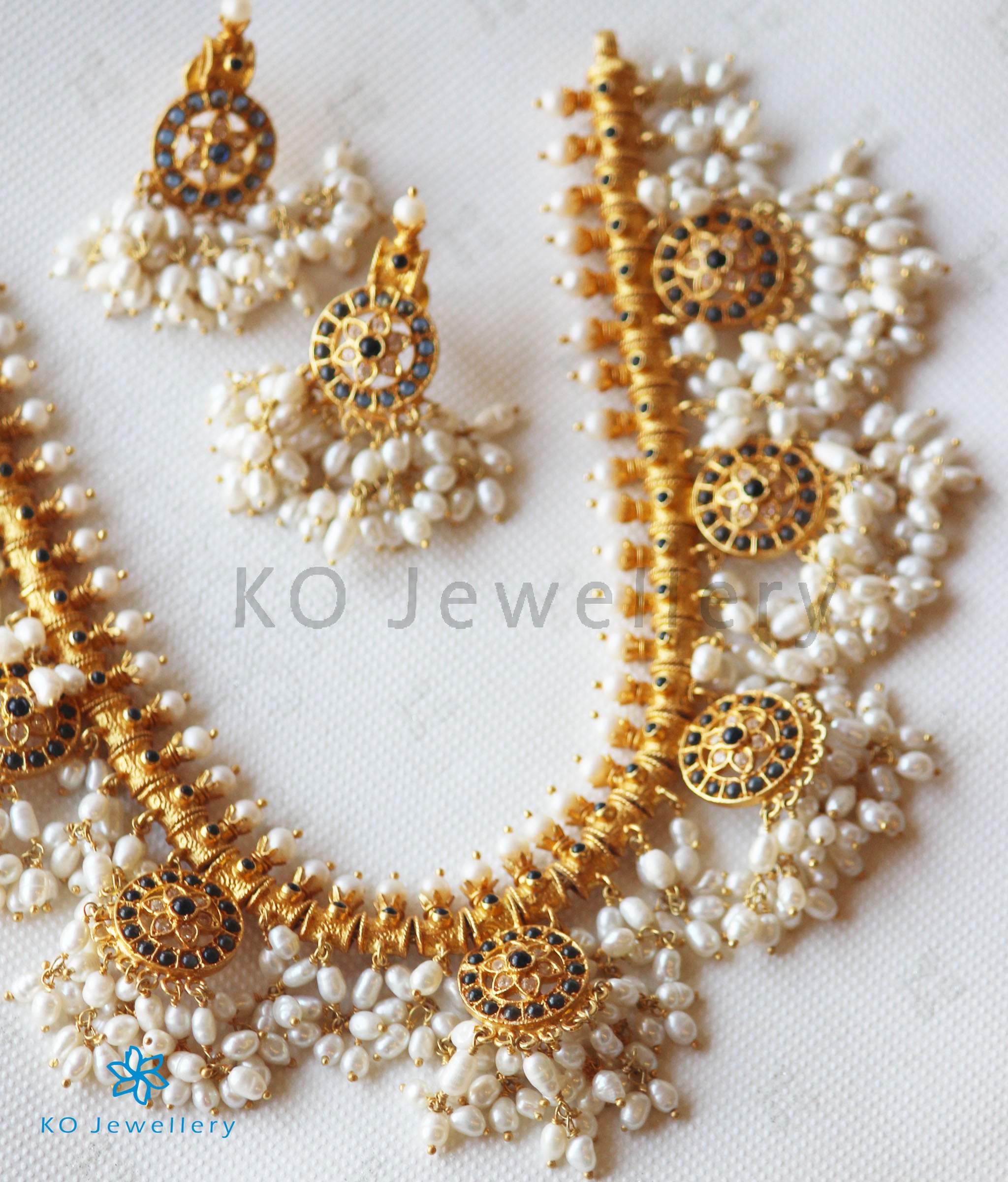 Gemstones used: kempu stone (also known as spinel or Zircon), natural freshwater Pearl.