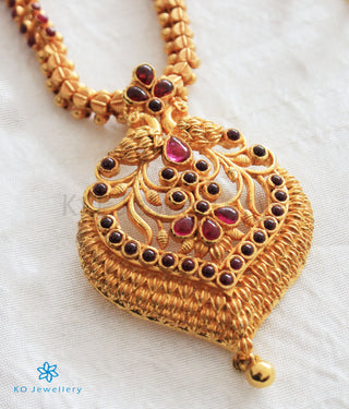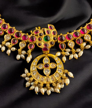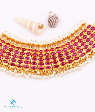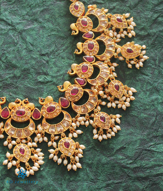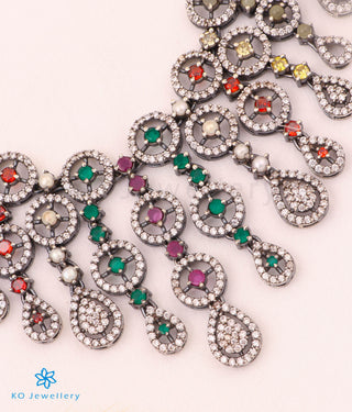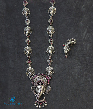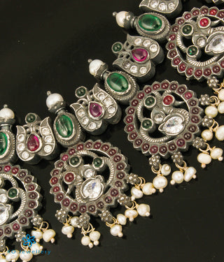 The Ahalya Silver Kempu Necklace (Oxidised)