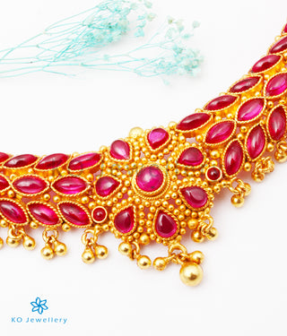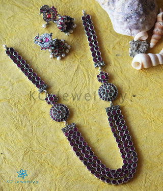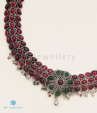 The Ahana Silver Kempu Necklace (Red/Oxidised)