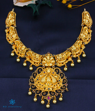 The Padmakshi Antique Silver Lakshmi Necklace (Oxidised)