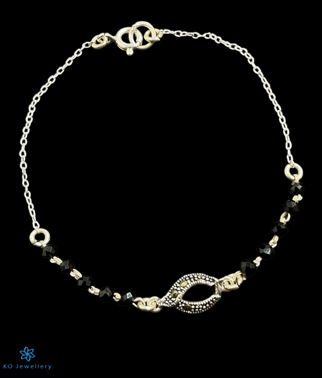An enchanting handmade bracelet in Sterling Silver (92.5%) with an interesting design .Light and comfortable enough for throughout the day wear this piece can be paired with formal office wear or casual wear. The bracelet comes in a standard size that fits all sizes.