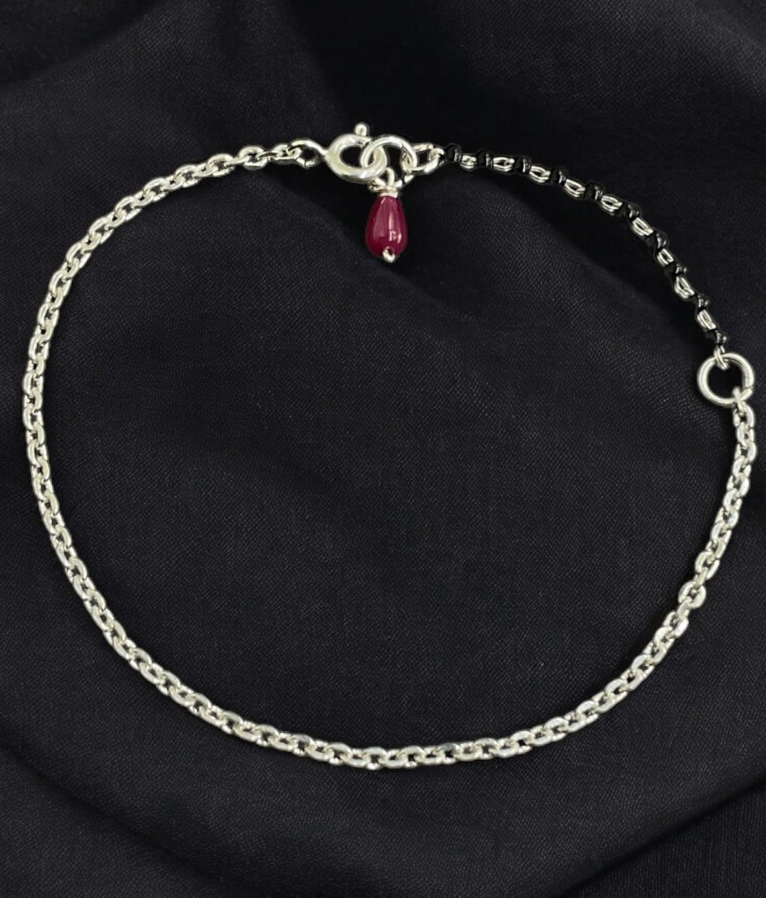 An enchanting handmade bracelet in Sterling Silver (92.5%) with an interesting design. Light and comfortable enough for throughout the day wear this piece can be paired with formal office wear or casual wear. The bracelet comes in a standard size that fits all sizes.