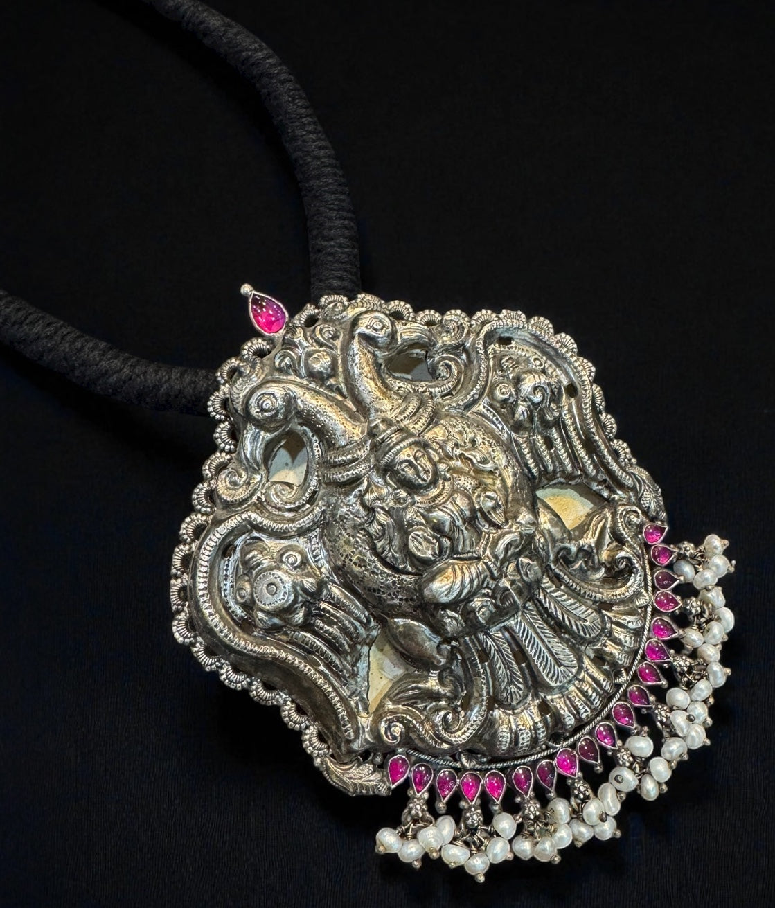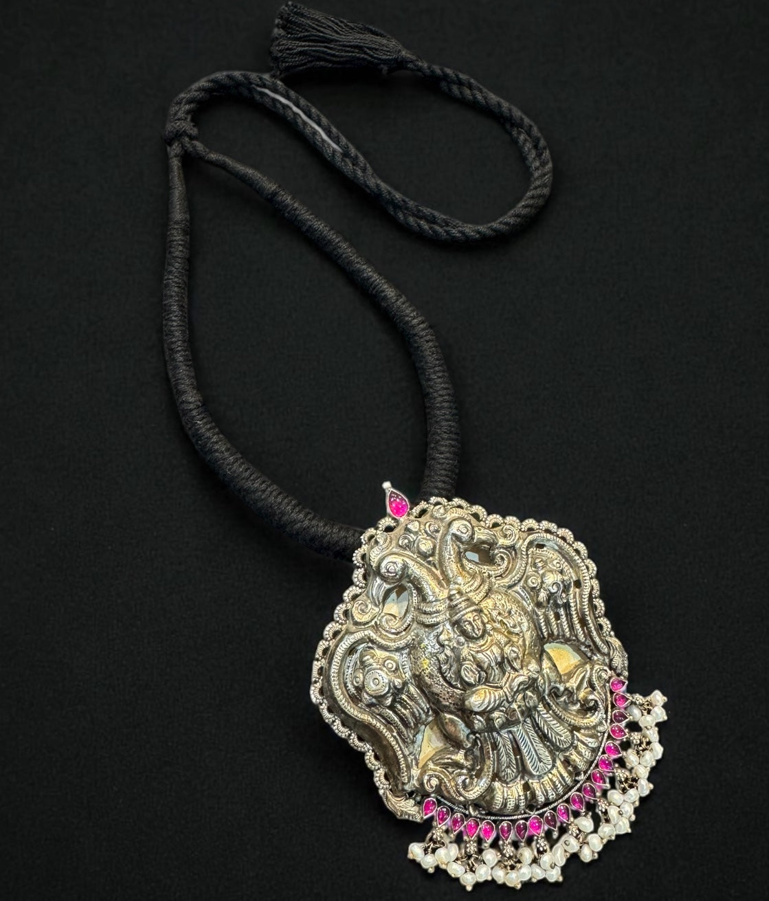 The Anulasaa Silver Gandaberunda Thread Necklace (Oxidised)
