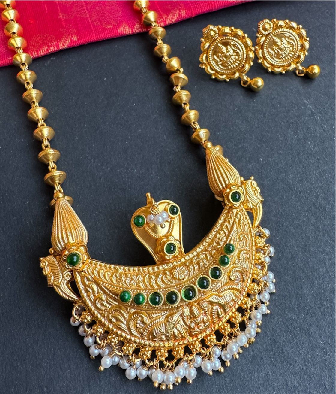 Gemstones used: Natural Pearl, kempu stone (also known as spinel or Zircon).