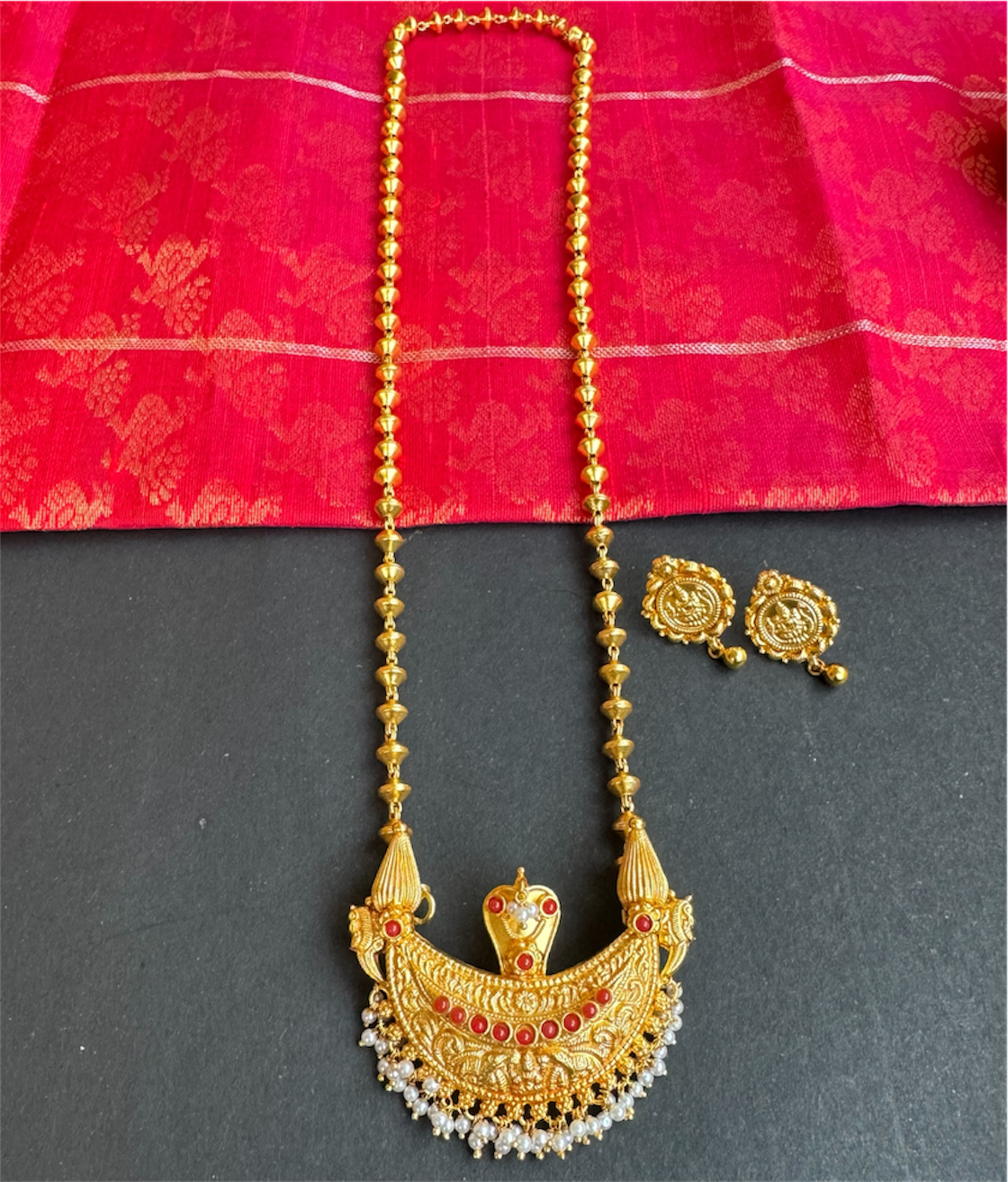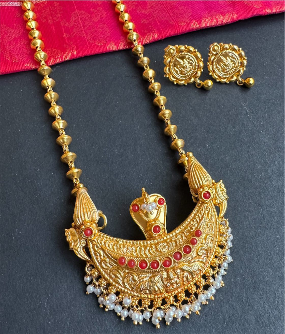 Gemstones used: Natural Pearl, kempu stone (also known as spinel or Zircon).