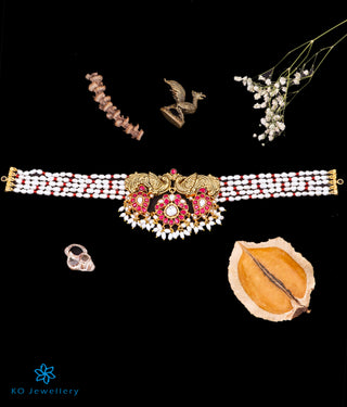 The Utkarsh Silver Choker Necklace & Earrings (Red)