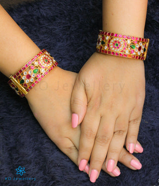 The 'Kundan-jadau' tradition of Indian jewellery is a centuries old technique that is a reminder of the rich cultural heritage of India. Introduced by the Mughals it was perfected by the artisans of Rajastan. Color and motifs were the focal point of this jewellery. Geometric designs are repeated and motifs of creepers, flowers, birds and foliage are used abundantly . Large floral motifs with gem centers are common.The techniques used demand great attention to detail and all pieces are completely handmade.