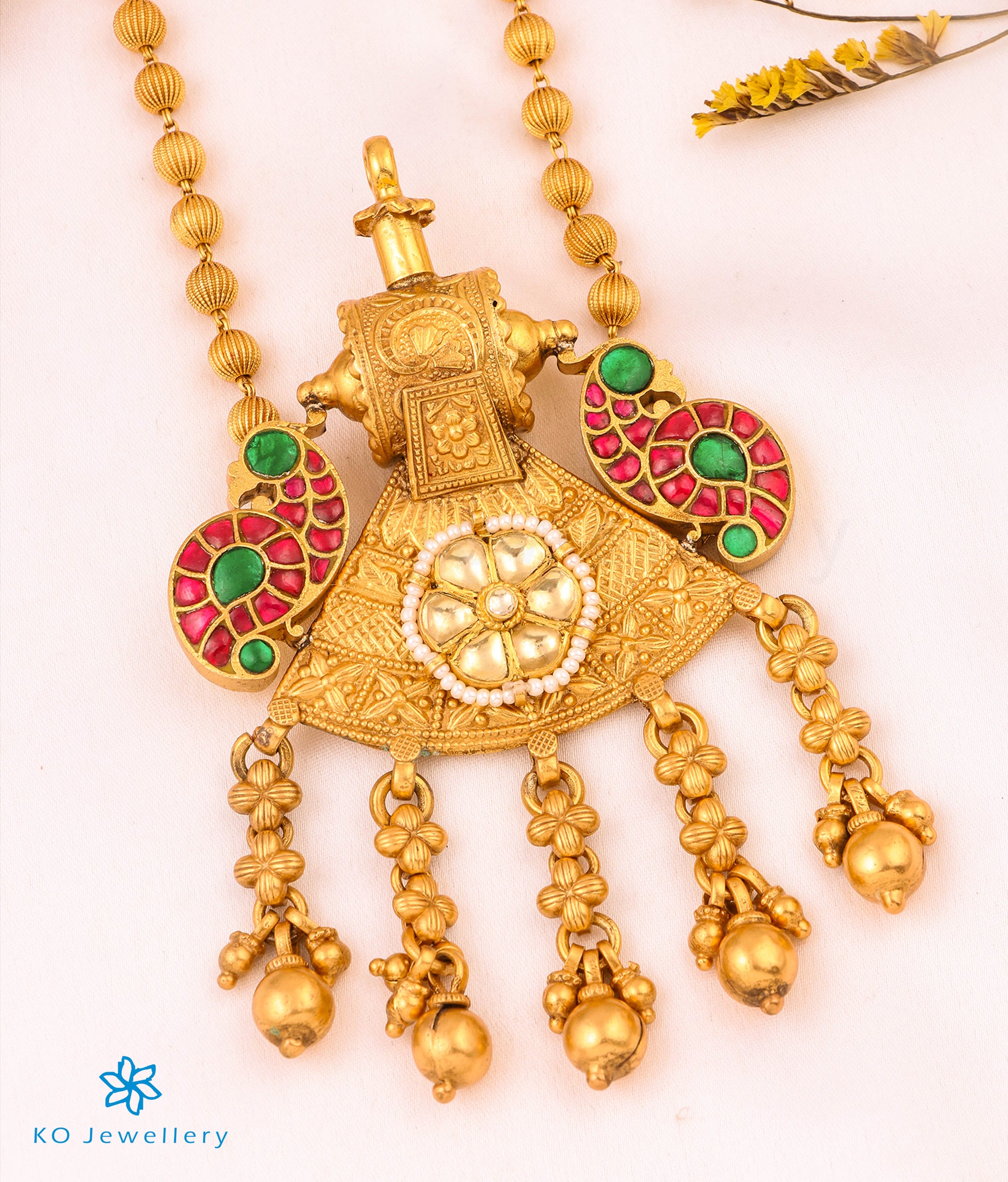 The Nidaka Antique Silver Kundan Peacock Necklace