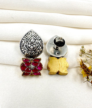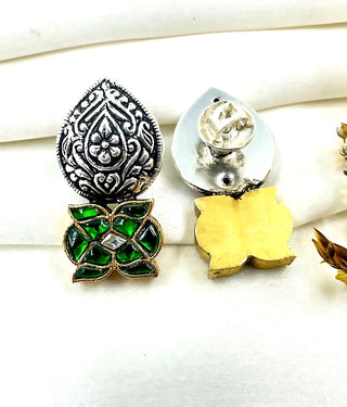 The 'Kundan-jadau' tradition of Indian jewellery is a centuries old technique that is a reminder of the rich cultural heritage of India. Introduced by the Mughals it was perfected by the artisans of Rajastan. Color and motifs were the focal point of this jewellery. Geometric designs are repeated and motifs of creepers, flowers, birds and foliage are used abundantly . Large floral motifs with gem centers are common.The techniques used demand great attention to detail and all pieces are completely handmade.
