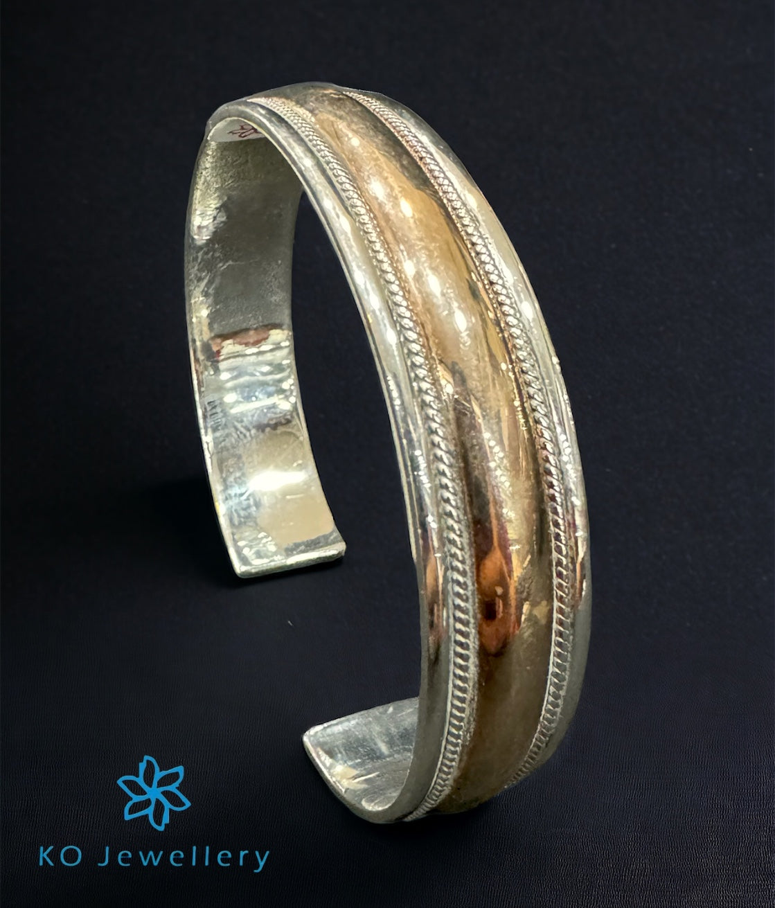 A bold & stylish bracelet in pure Sterling Silver (92.5%) to flaunt your style quotient. This is an open kada with burnished copper colour finish on the inside, and can fit all sizes. This is a unisex design that makes a great accessory for men too.