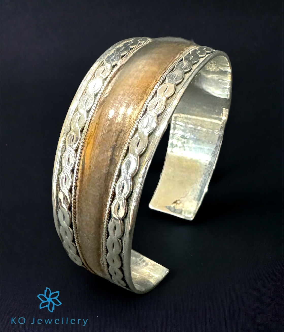 A bold & stylish bracelet in pure Sterling Silver (92.5%) to flaunt your style quotient. This is an open kada with burnished copper colour finish on the inside, and can fit all sizes. This is a unisex design that makes a great accessory for men too.