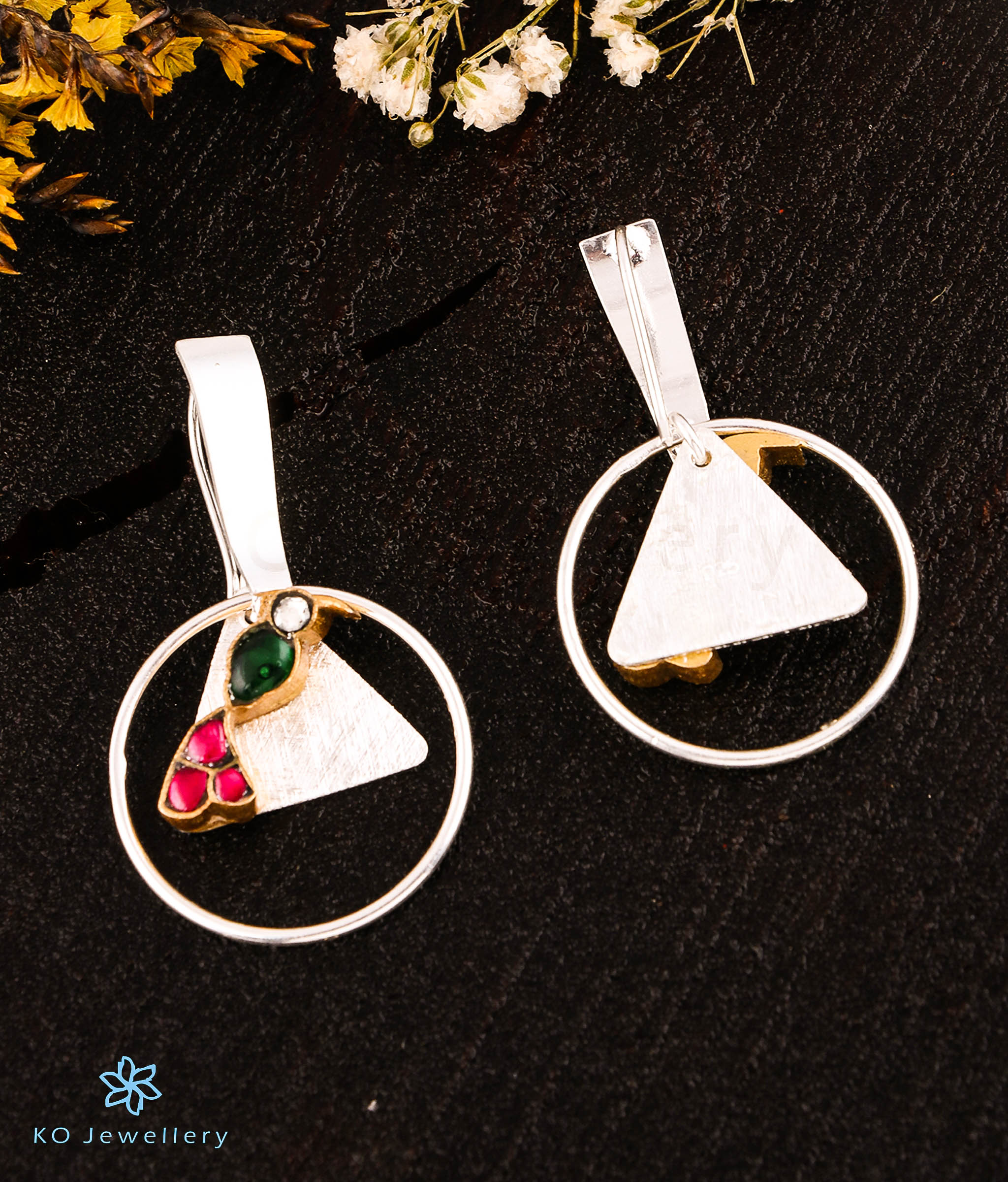 Statement earrings that are sure to be conversation pieces; these parrot motif earrings are handcrafted in Sterling silver (92.5%) using the ancient kundan jadau technique. Pair them with your traditional outfits, or style them with your indo- western outfits they look stunning. The earrings come with a hook .