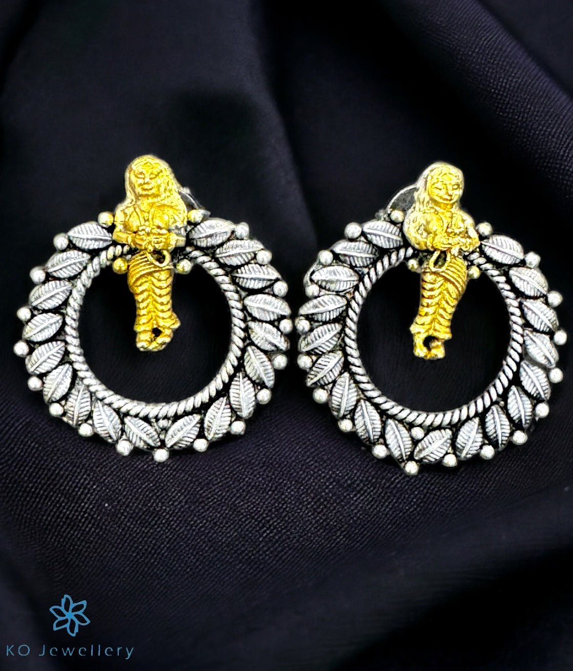 The Nartaki Antique Silver Earrings (Two-Tone)