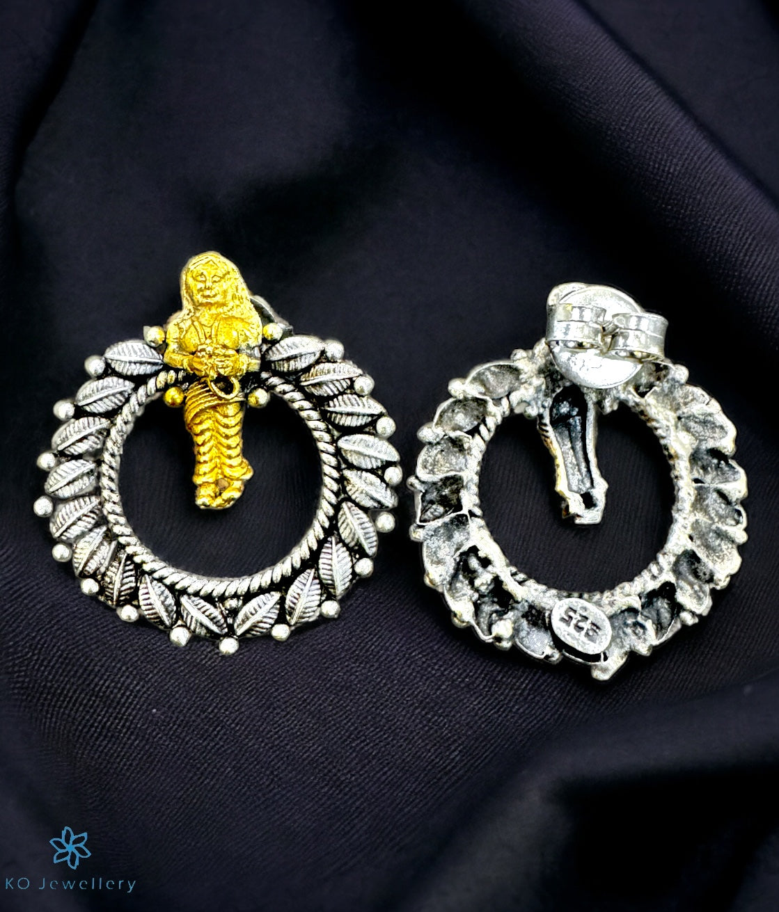 Antique Silver Earrings (Two-Tone) -Antique Silver Earrings for women Collection - KO Jewellery