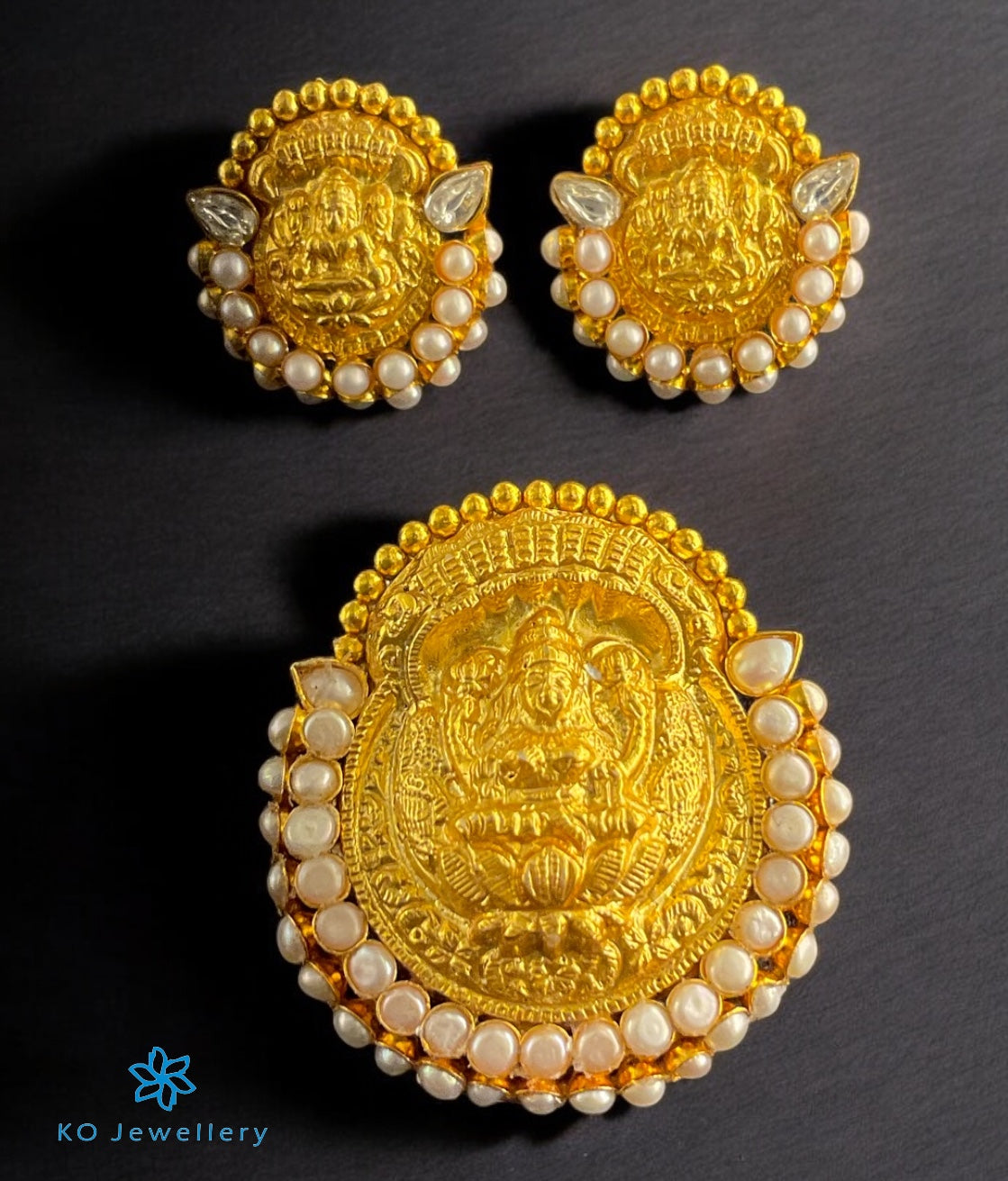 The Abhata Silver Pearl Lakshmi Pendant & Earrings