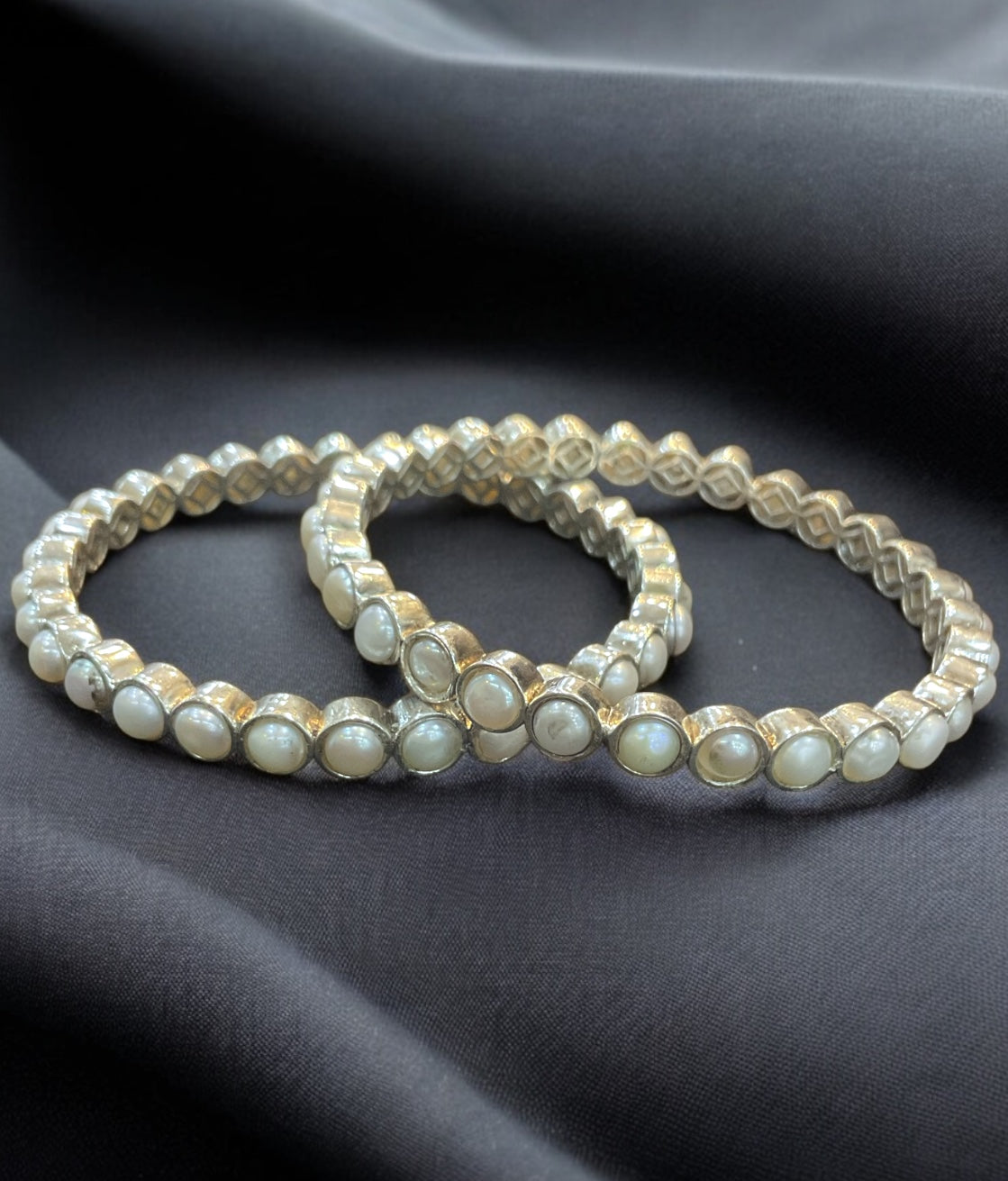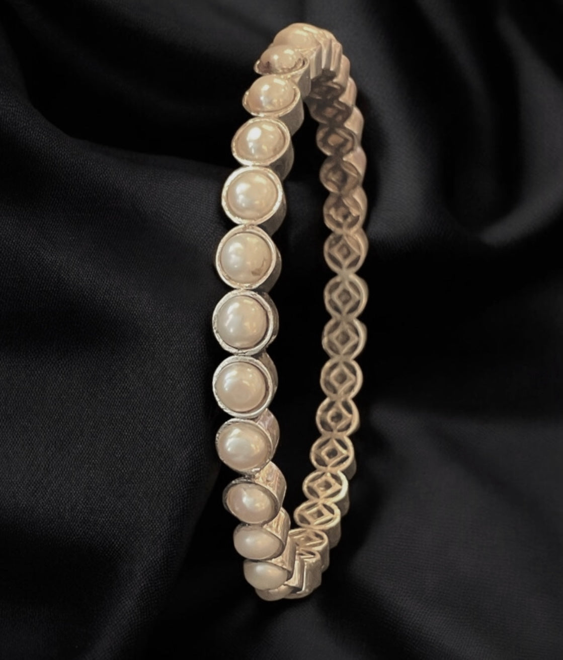 The Mrinmoyee Silver Pearl Bangle- Single (Oxidised/Size/2.2/ 2.4/2.6/2.8)