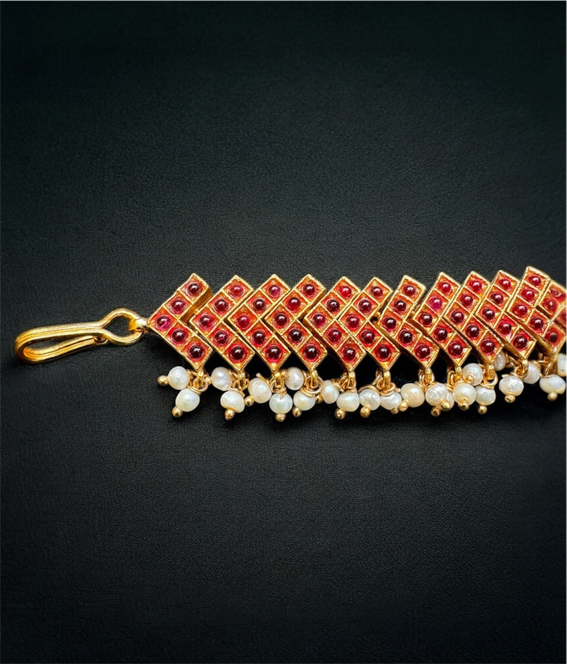 Gemstones used: kempu stone (also known as spinel or Zircon), Pearl