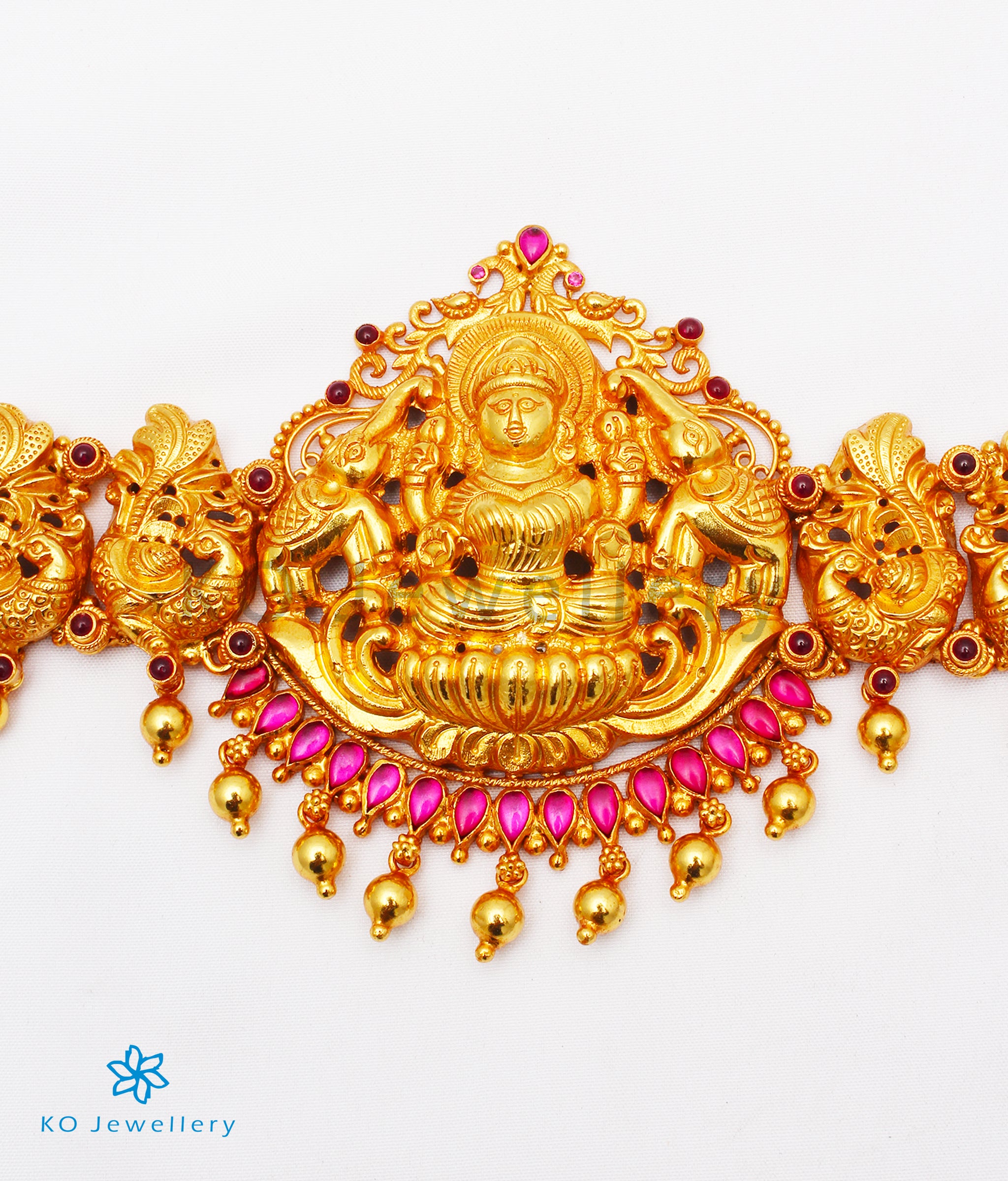 Variously called `Daabu' , `Vaddanam' , `Oddiyanam' or `Sonta patti' the waist belt is an important component of a bride's attire in South India. The design is adjustable to any waist size.