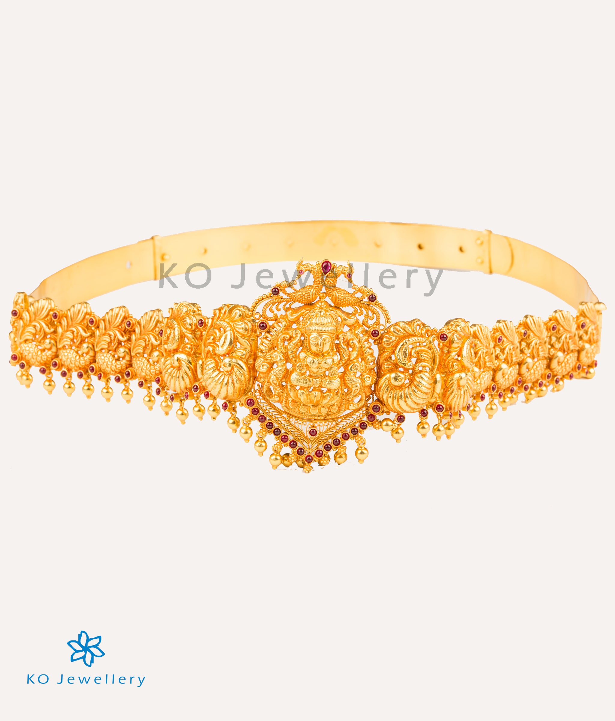 Variously called `Daabu' , `Vaddanam' , `Oddiyanam' or `Sonta patti' the waist belt is an important component of a bride's attire in South India. The waist belt is adjustable to any waist size.