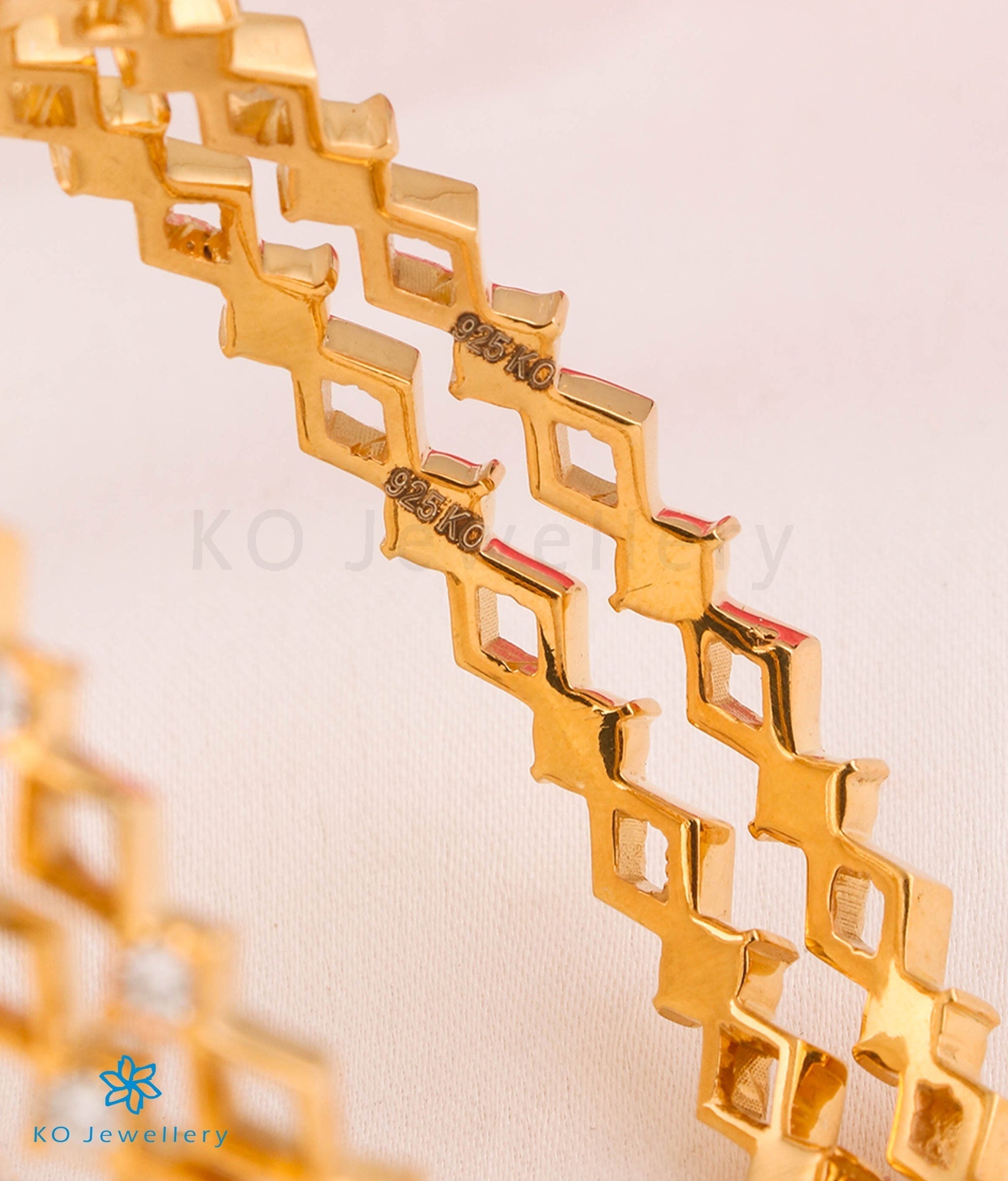 The bangle uses AAA+ Quality Cubic Zircon that gives it a sparkling shine. Handcrafted in Sterling Silver (92.5%) in a flawless pattern to mesmerise and awe us with its intricacies of design and flawless craftsmanship and gold-dipped in a special process . This seamlessly handcrafted bangle can be bought as a single piece or in a pair. The price listed is for a single bangle.