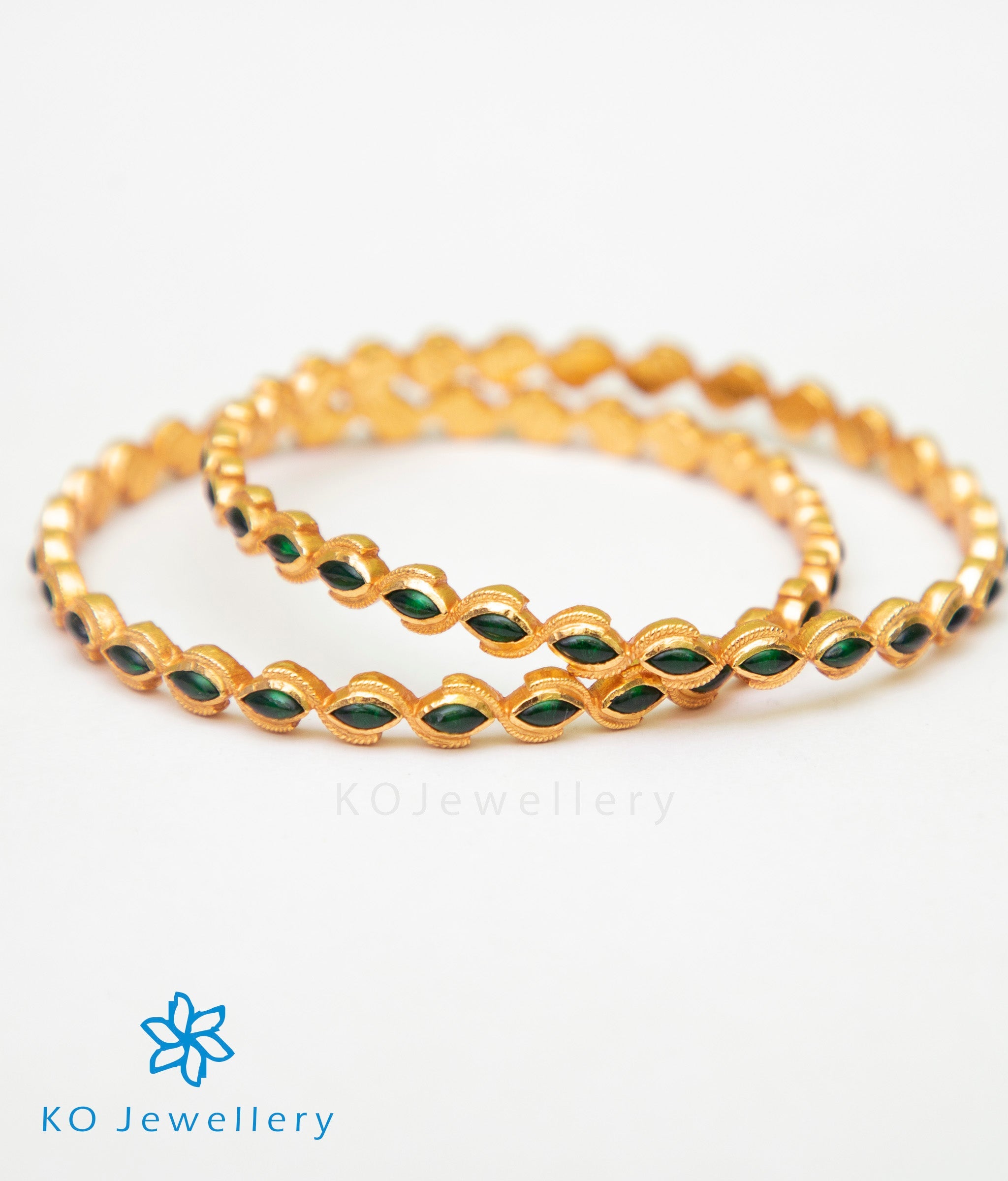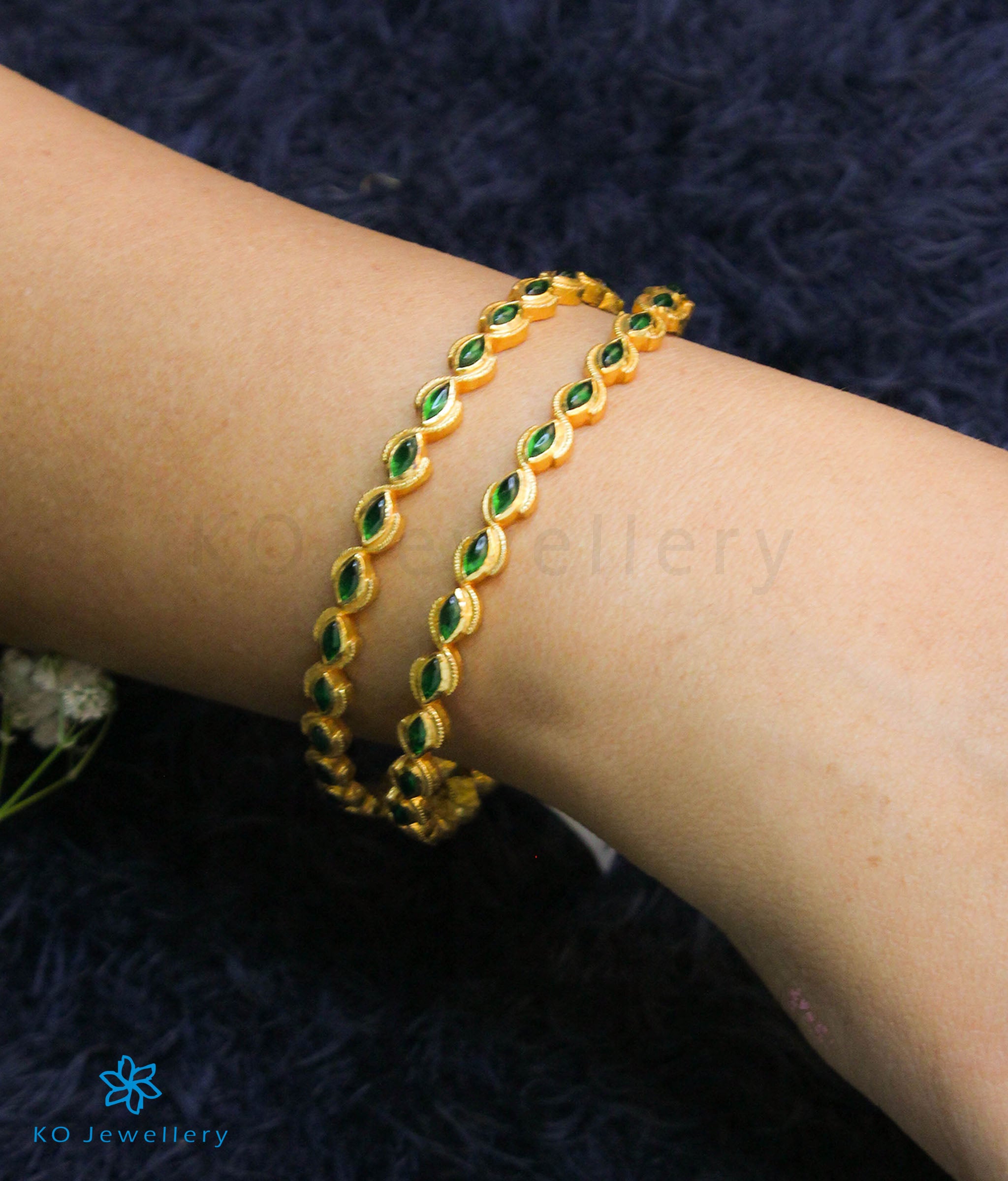 The Eka Silver Kempu Bangle (Green/Size 2.2/2.4/2.8)