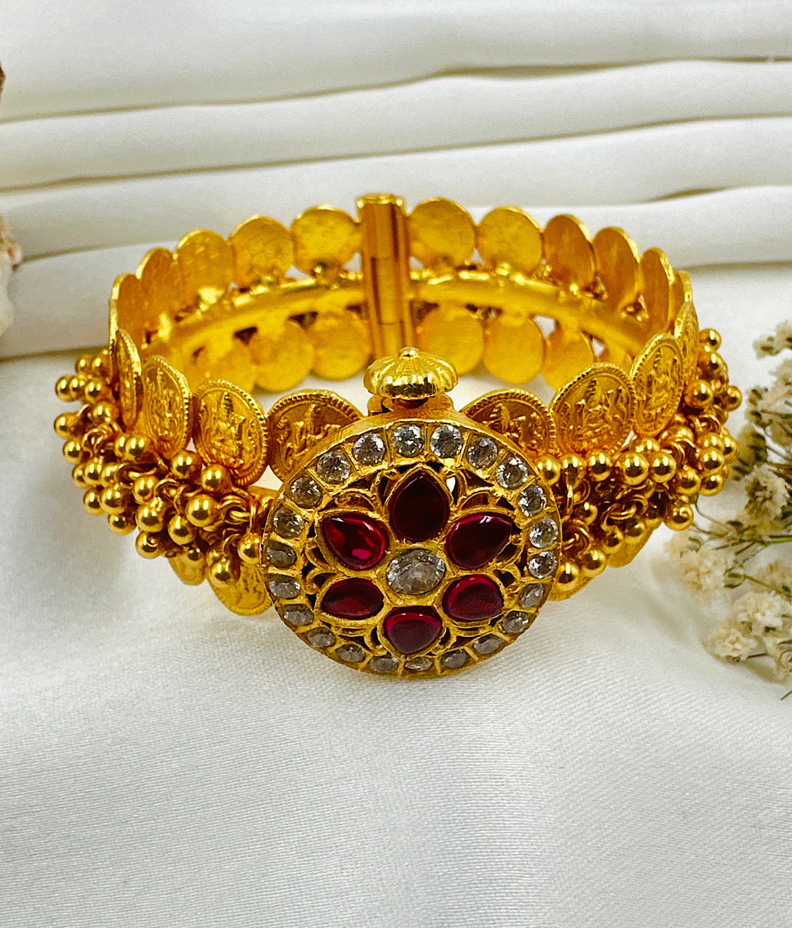 The Gejje Silver Coin Openable Kada Bracelet (Red/White/Size 2.2/2.4/2.6/2.8)